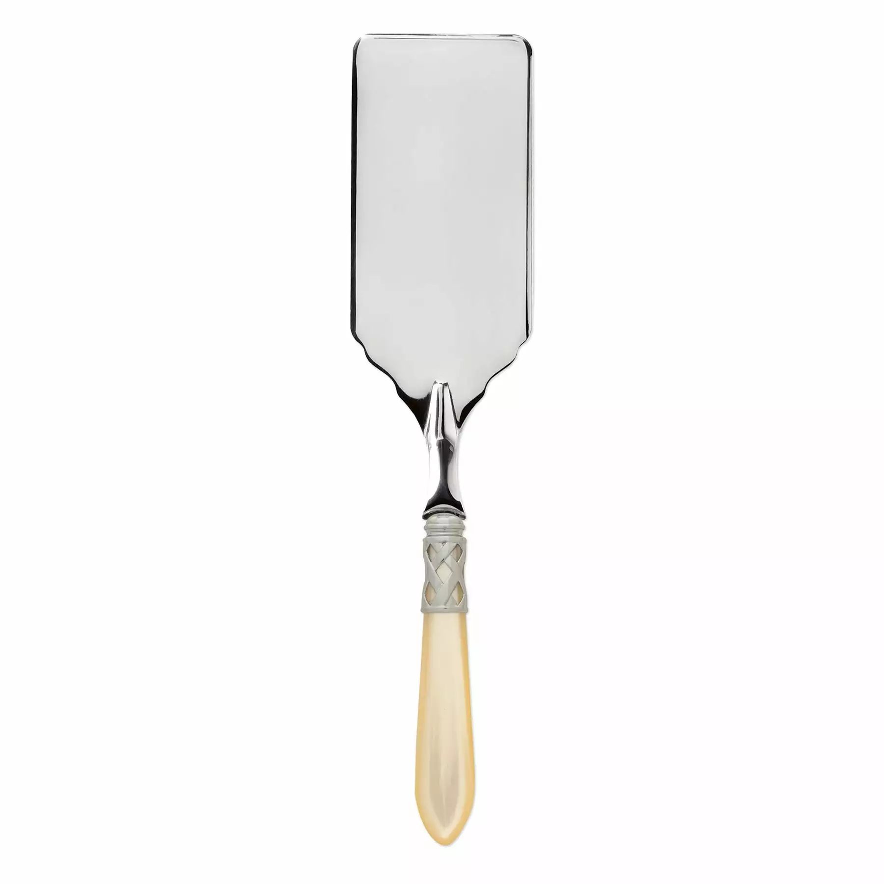 The Aladdin Antique Lasagna Server features elegant pearlized handles with the strength of high-grade acrylic and 18/10 stainless steel. This piece is also available in our brilliant finish.