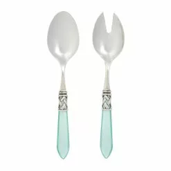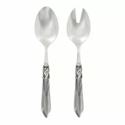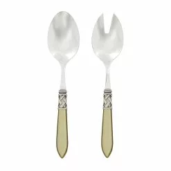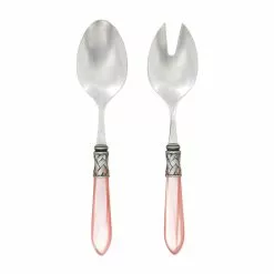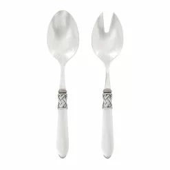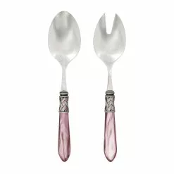 The Aladdin Antique Salad Server Set features elegant pearlized handles with the strength of high-grade acrylic and 18/10 stainless steel. This piece is also available in our brilliant finish.