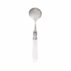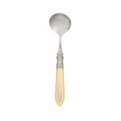 The Aladdin Antique Sauce Ladle features elegant pearlized handles with the strength of high-grade acrylic and 18/10 stainless steel. This piece is also available in our brilliant finish.
