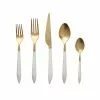 The Aladdin Brilliant Five-Piece Place Setting (Set of 4) features elegant pearlized handles with the strength of high-grade acrylic and 18/10 stainless steel. The brilliant finish on the handle has a sophisticated, updated look.