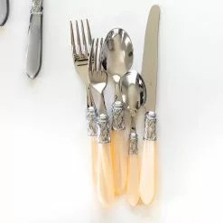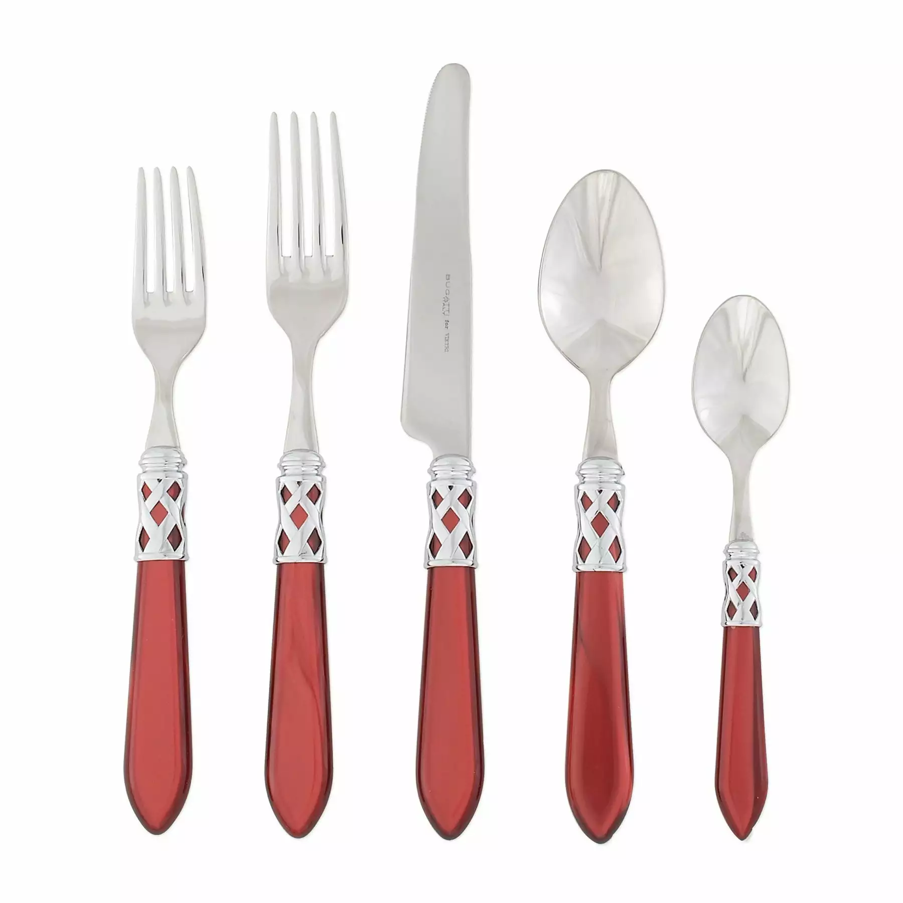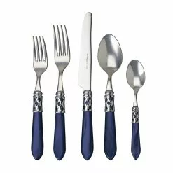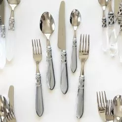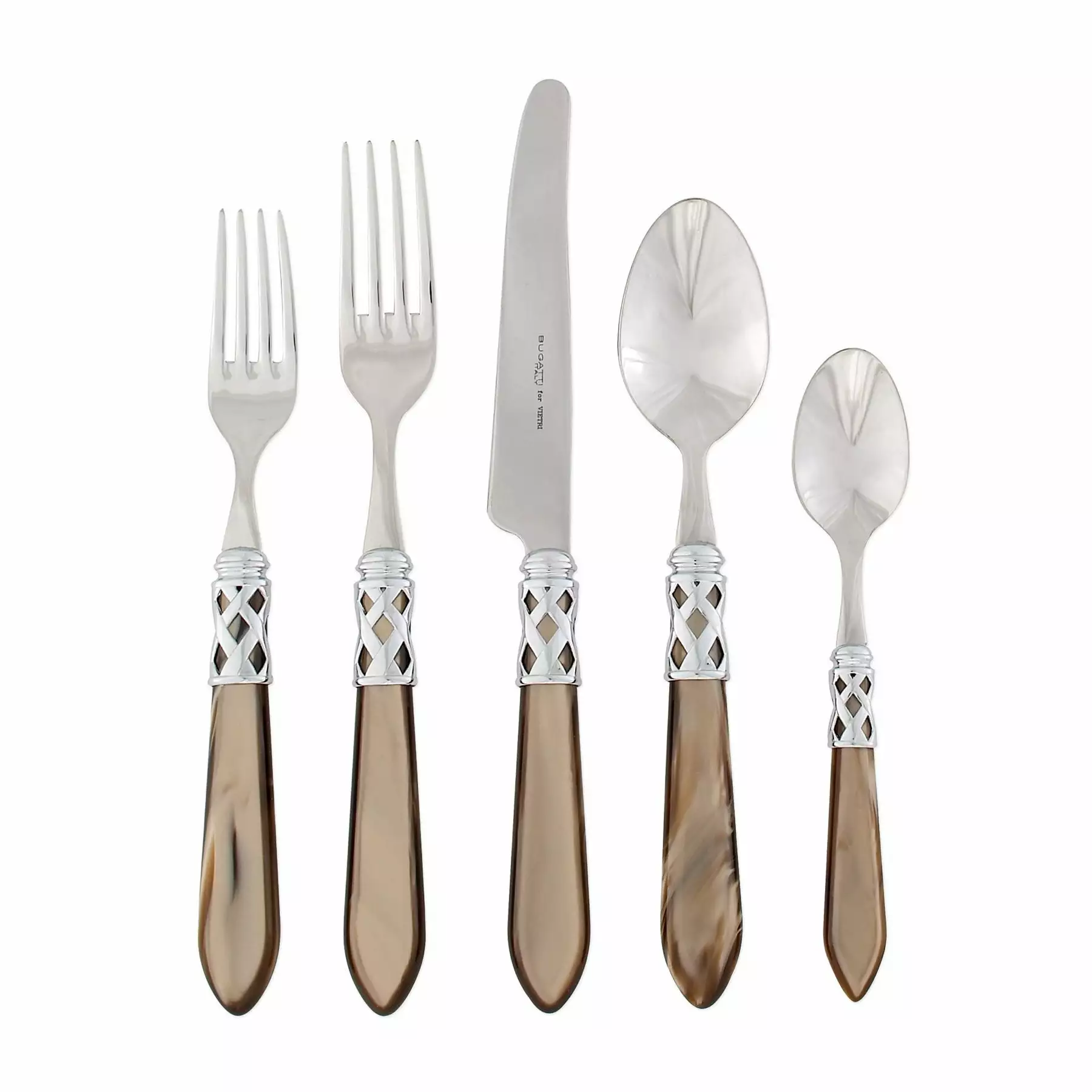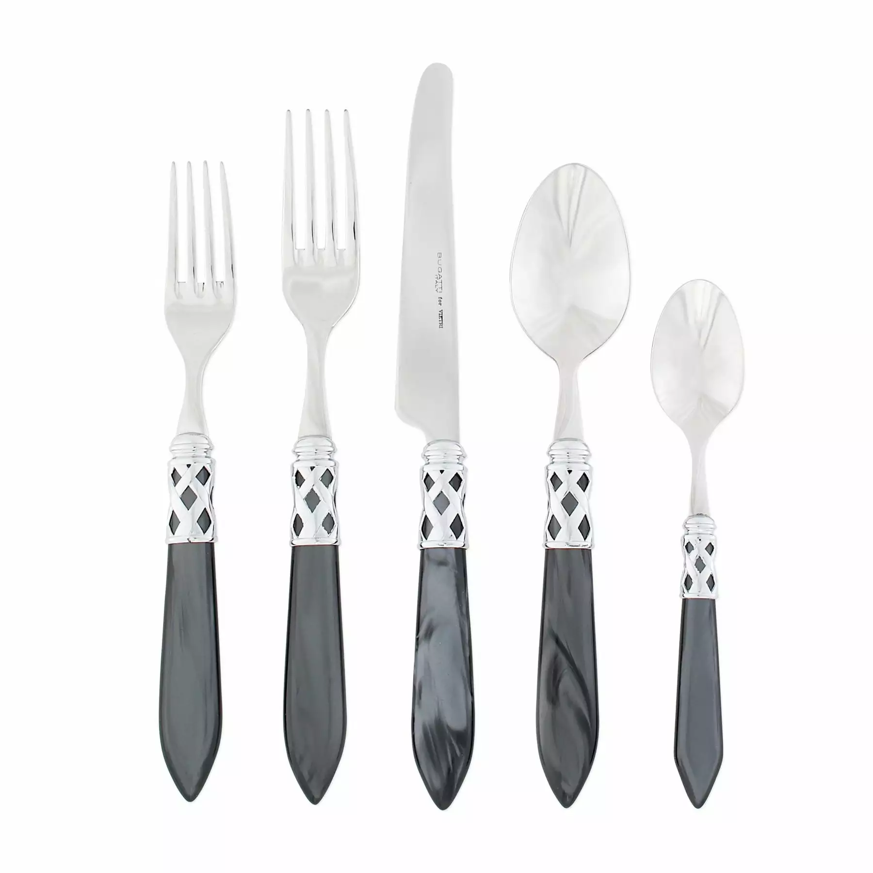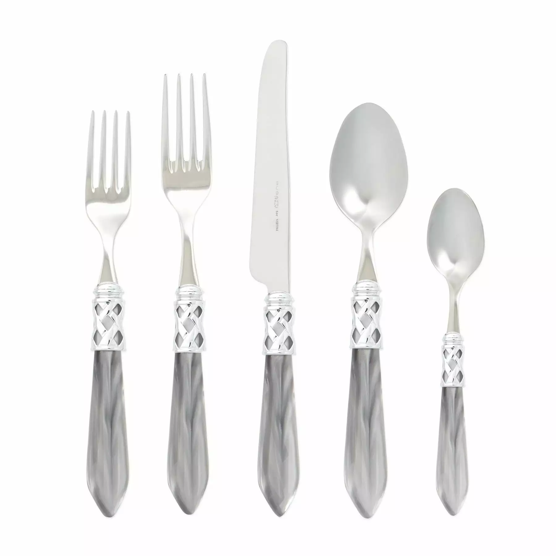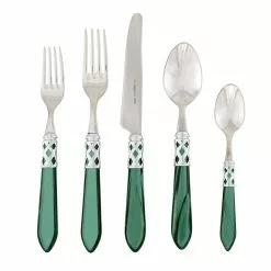 The Aladdin Brilliant Five-Piece Place Setting features elegant pearlized handles with the strength of high-grade acrylic and 18/10 stainless steel. The brilliant finish on the handle has a sophisticated, updated look.