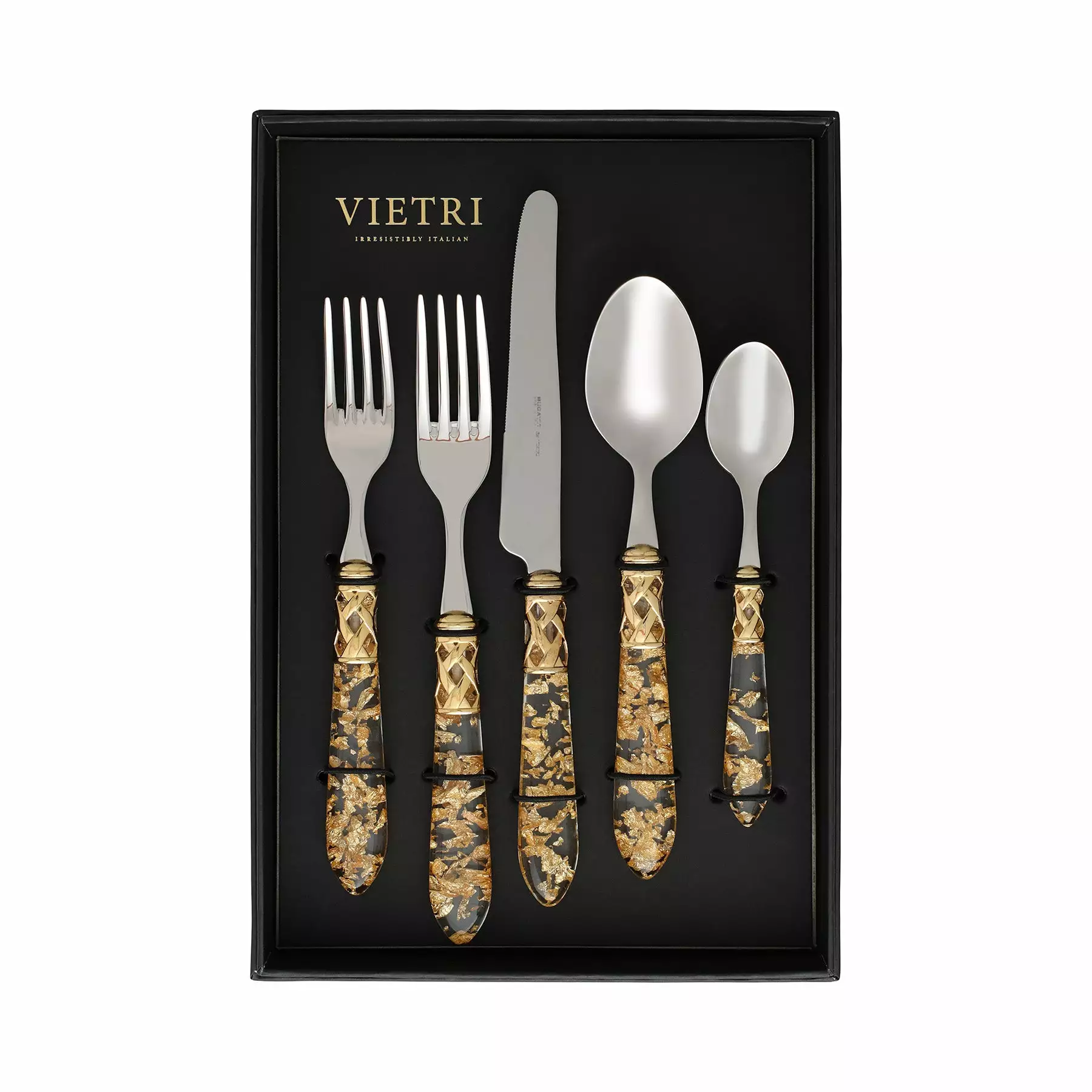 The Aladdin Brilliant Five-Piece Place Setting (Set of 4) features elegant pearlized handles with the strength of high-grade acrylic and 18/10 stainless steel. The brilliant finish on the handle has a sophisticated, updated look.