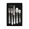 The Aladdin Brilliant Five-Piece Place Setting (Set of 4) features elegant pearlized handles with the strength of high-grade acrylic and 18/10 stainless steel. The brilliant finish on the handle has a sophisticated, updated look.