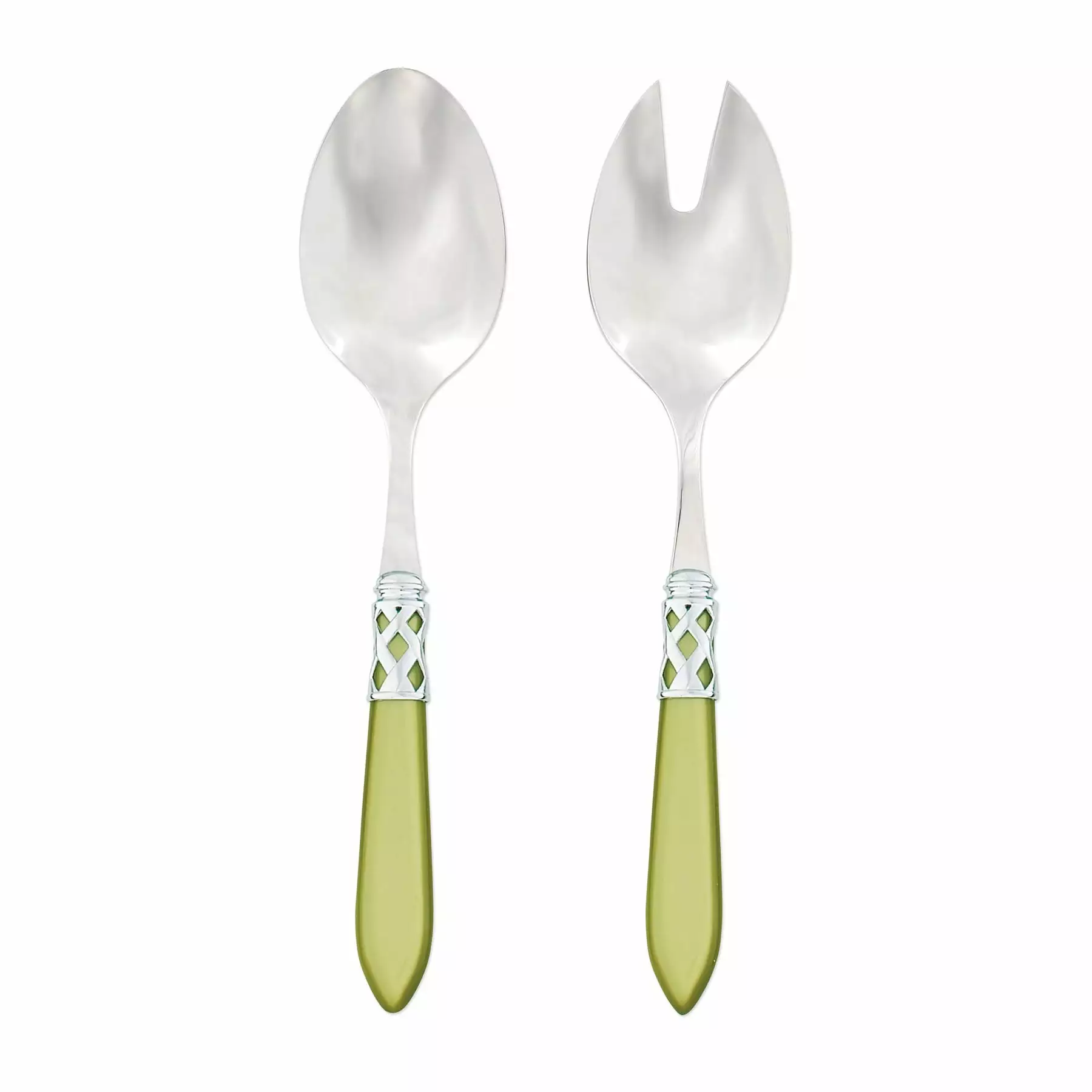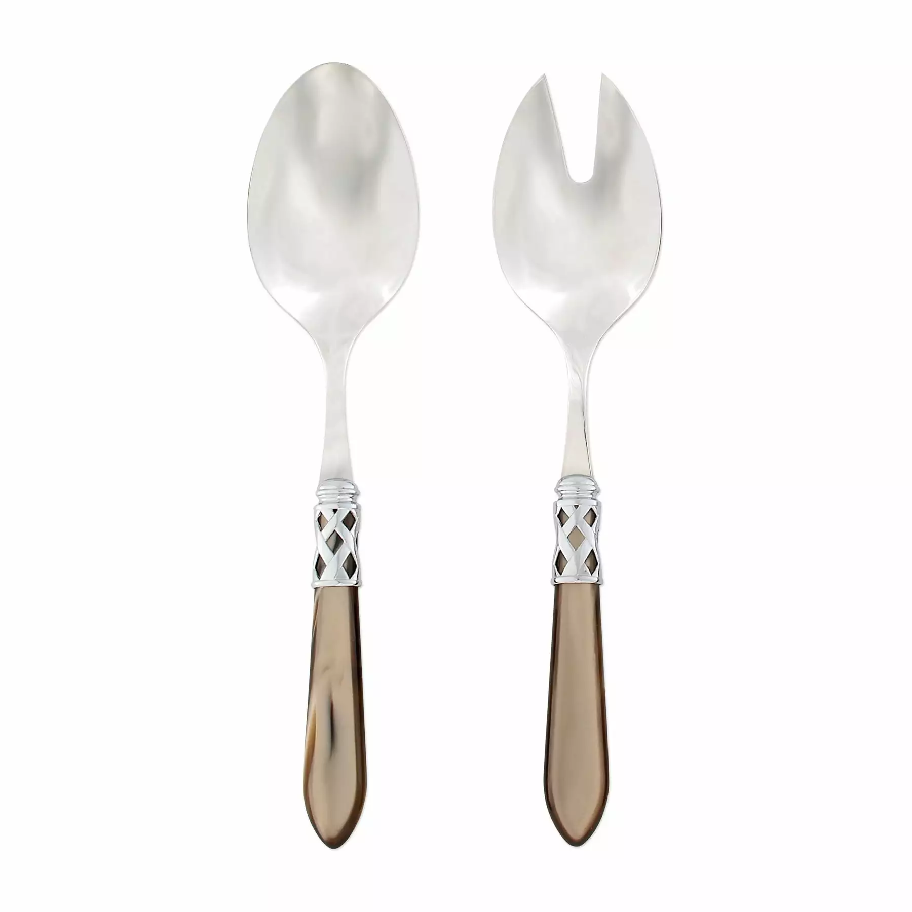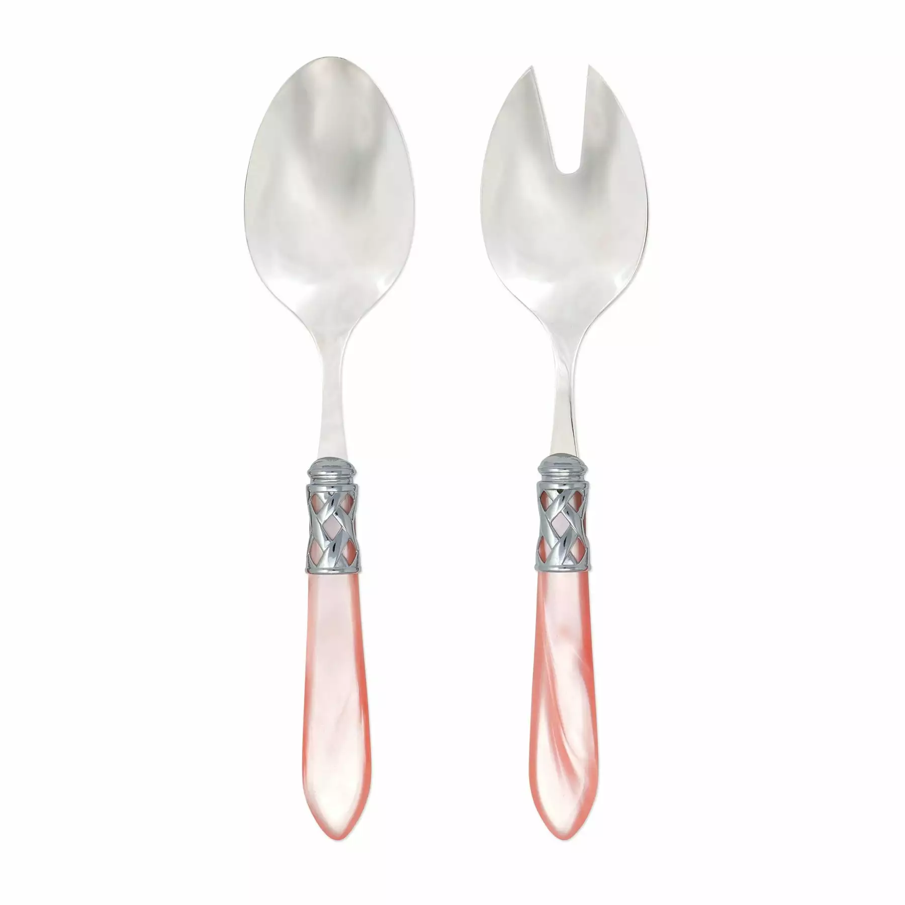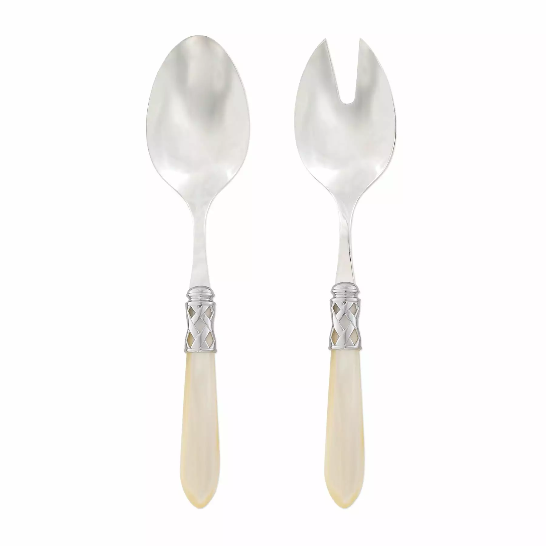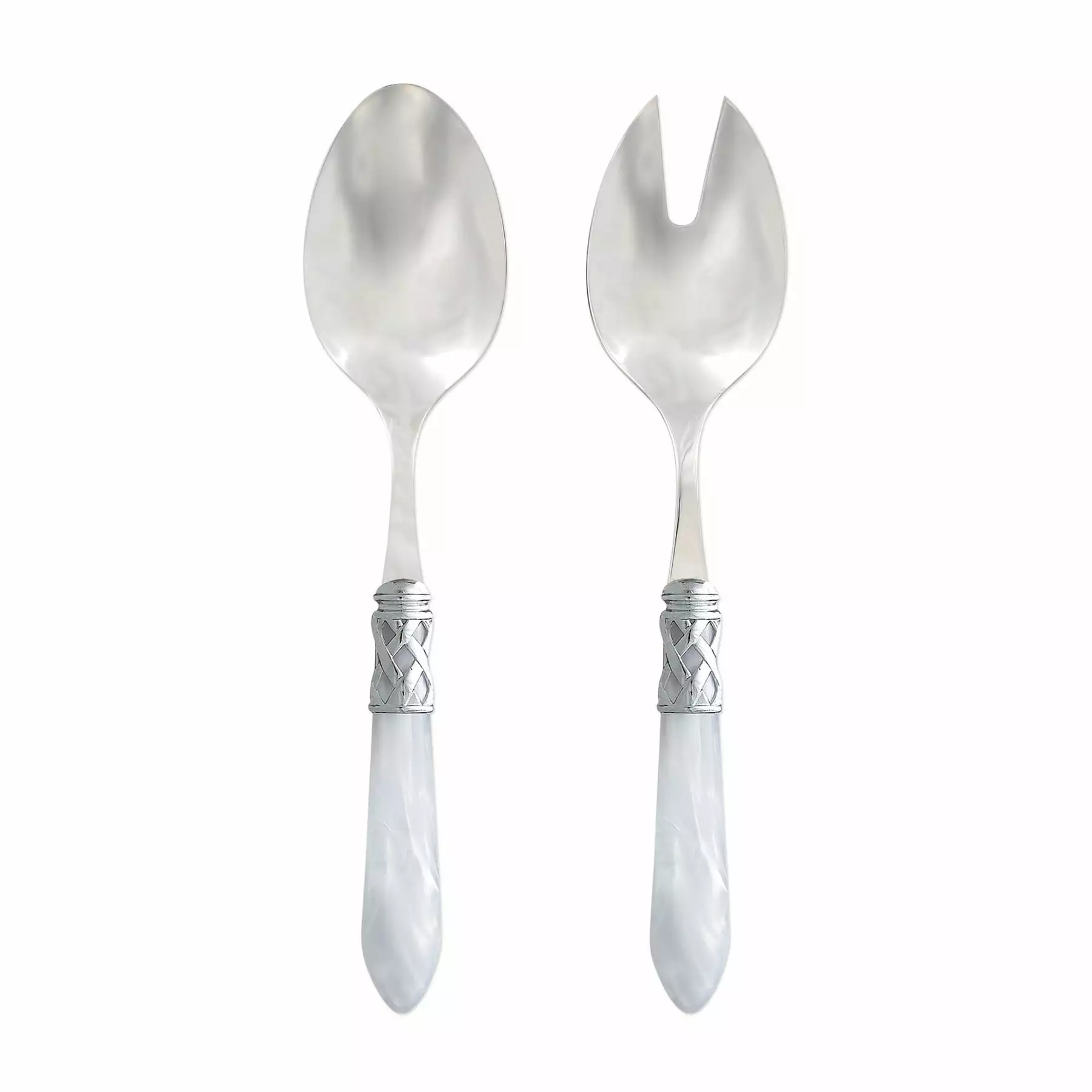 The Aladdin Brilliant Salad Server Set features elegant pearlized handles with the strength of high-grade acrylic and 18/10 stainless steel. This piece is also available in our antique finish.