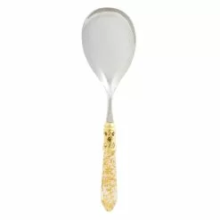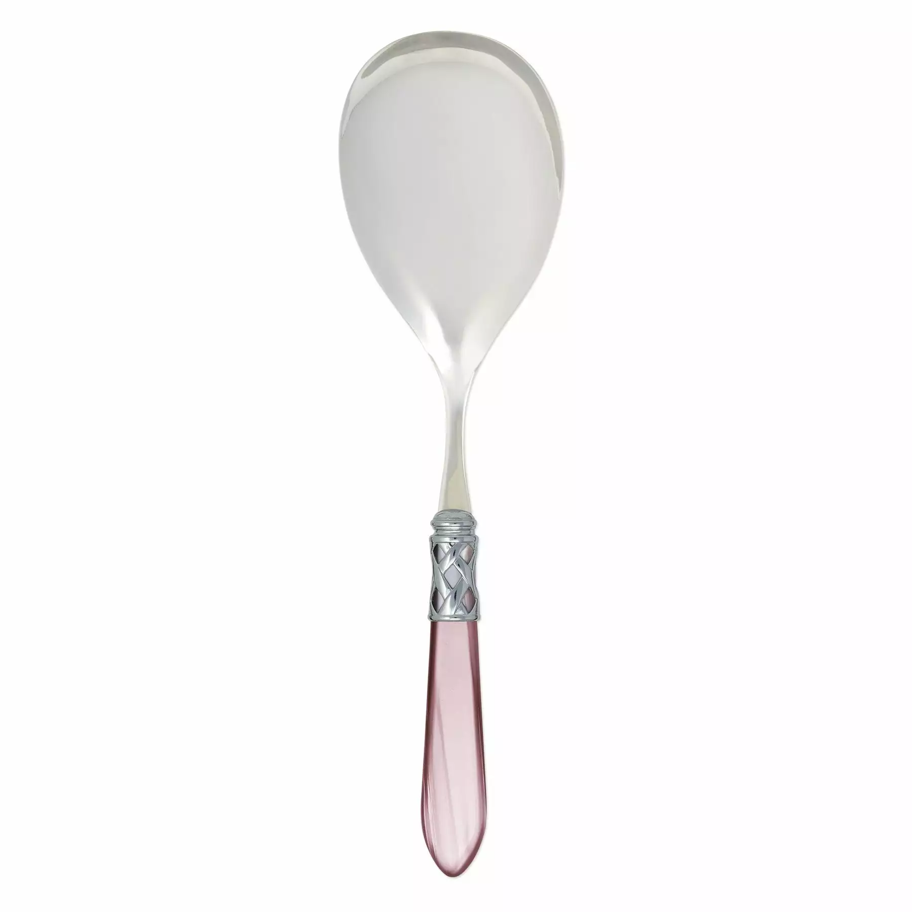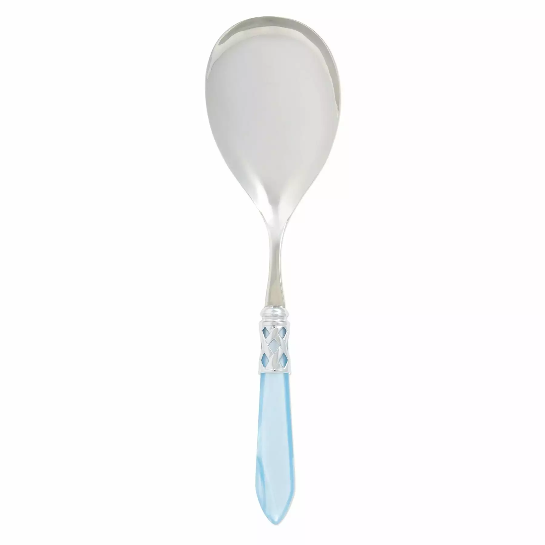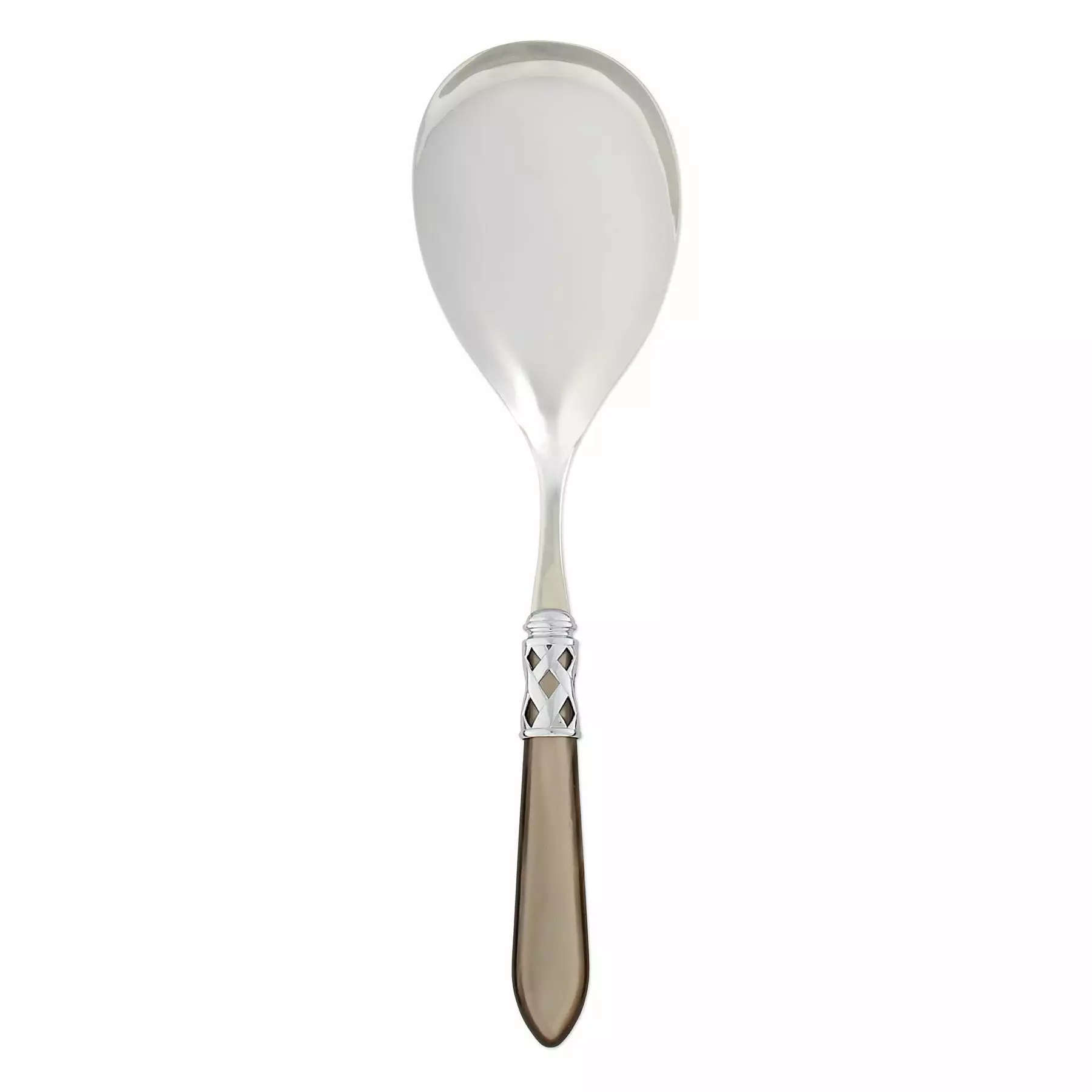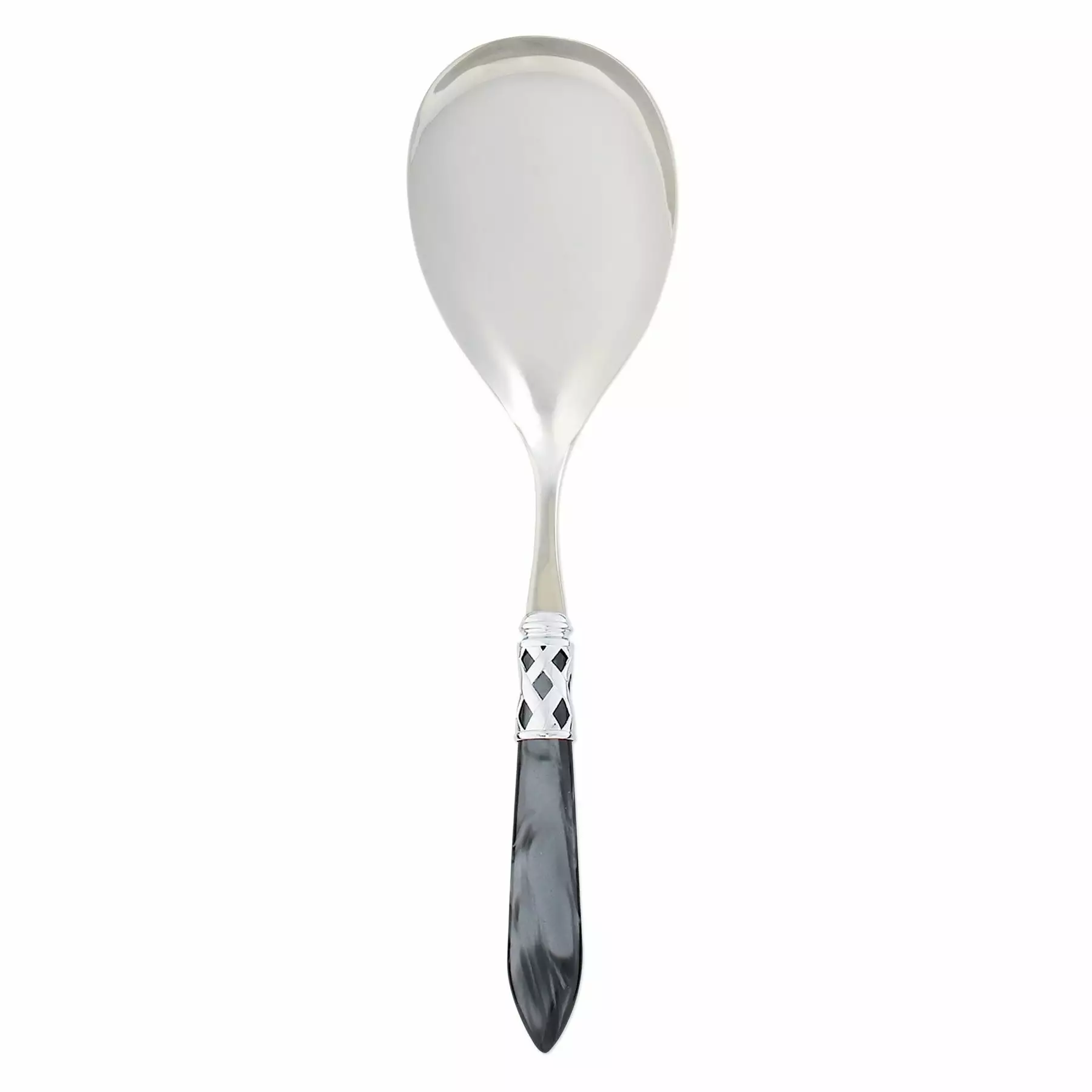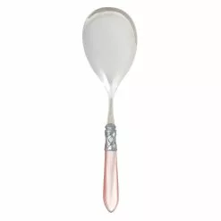 The Aladdin Brilliant Serving Spoon features elegant pearlized handles with the strength of high-grade acrylic and 18/10 stainless steel. This piece is also available in our antique finish.