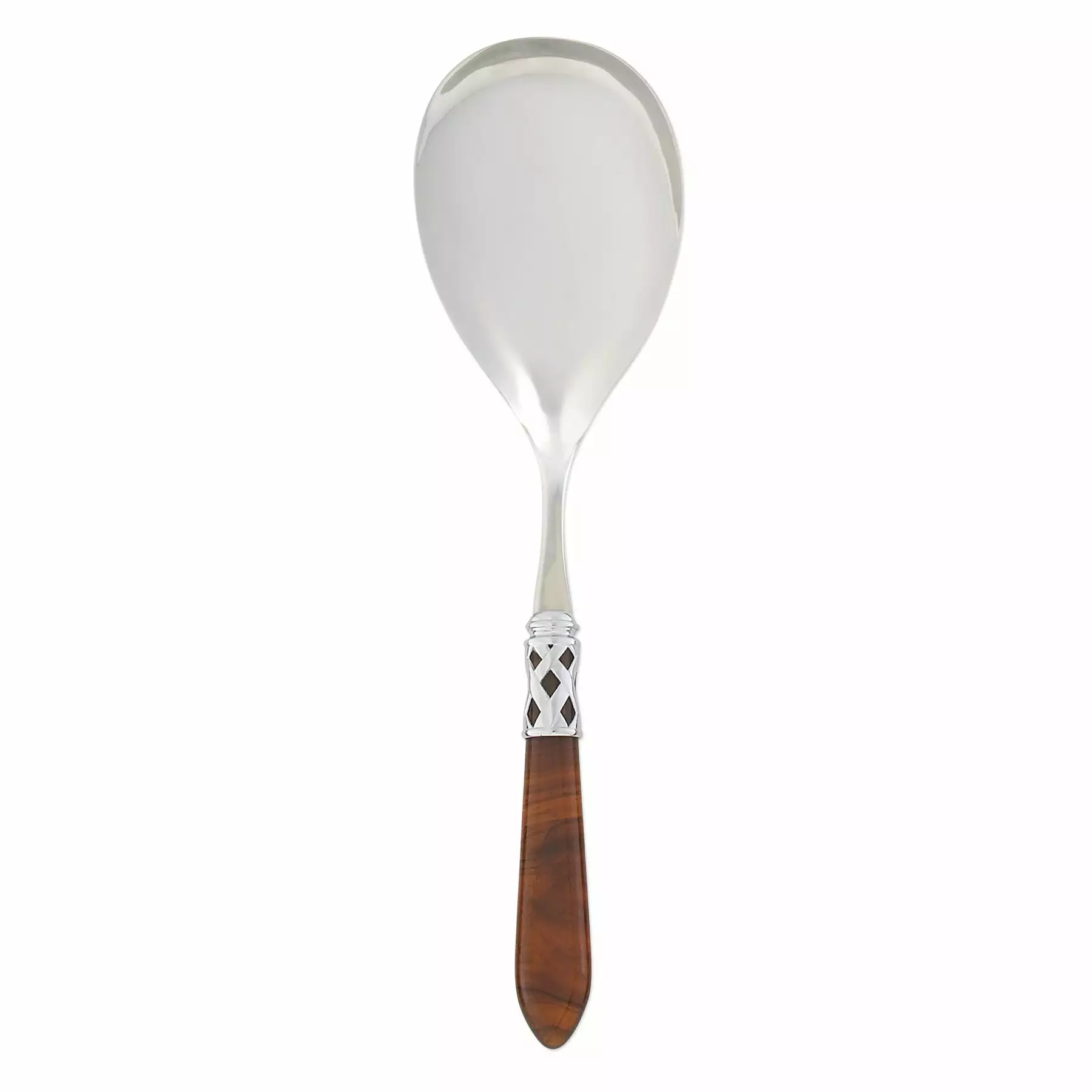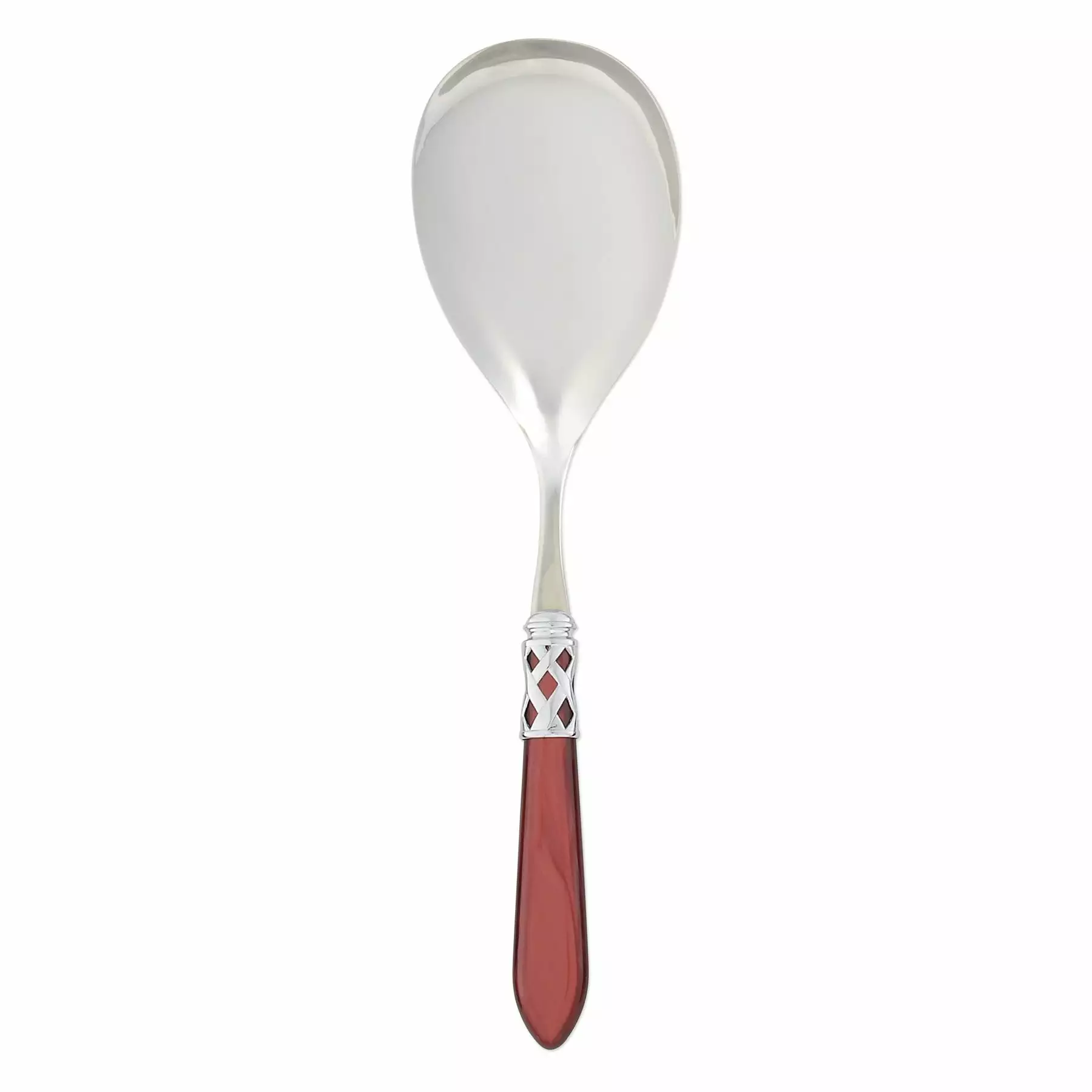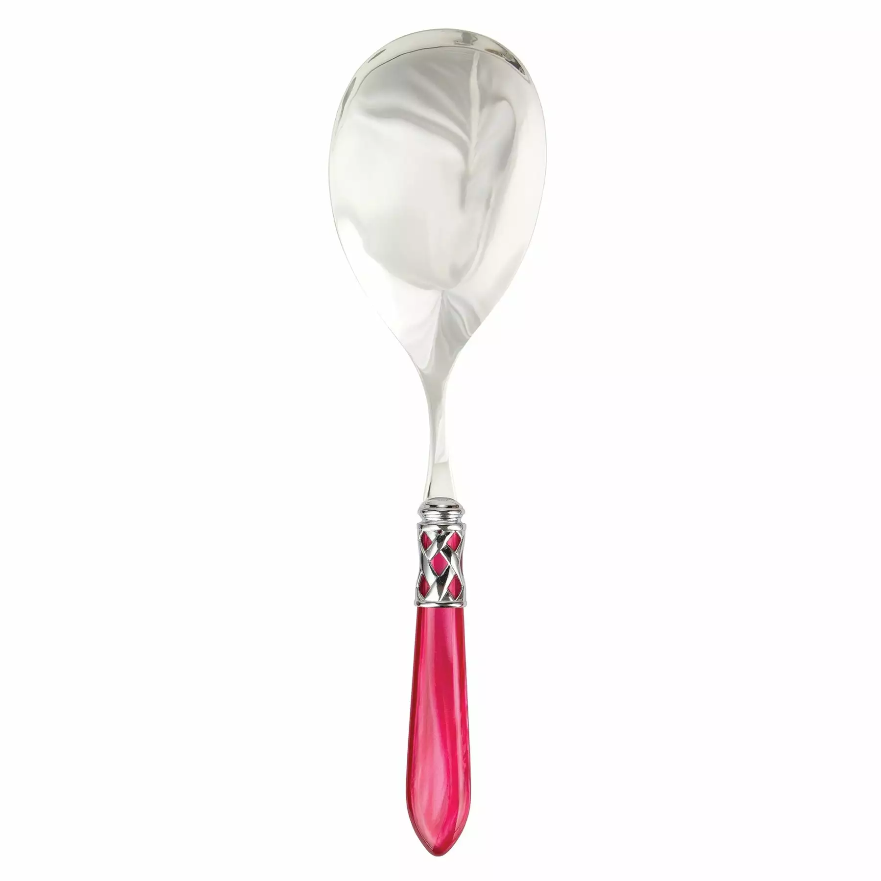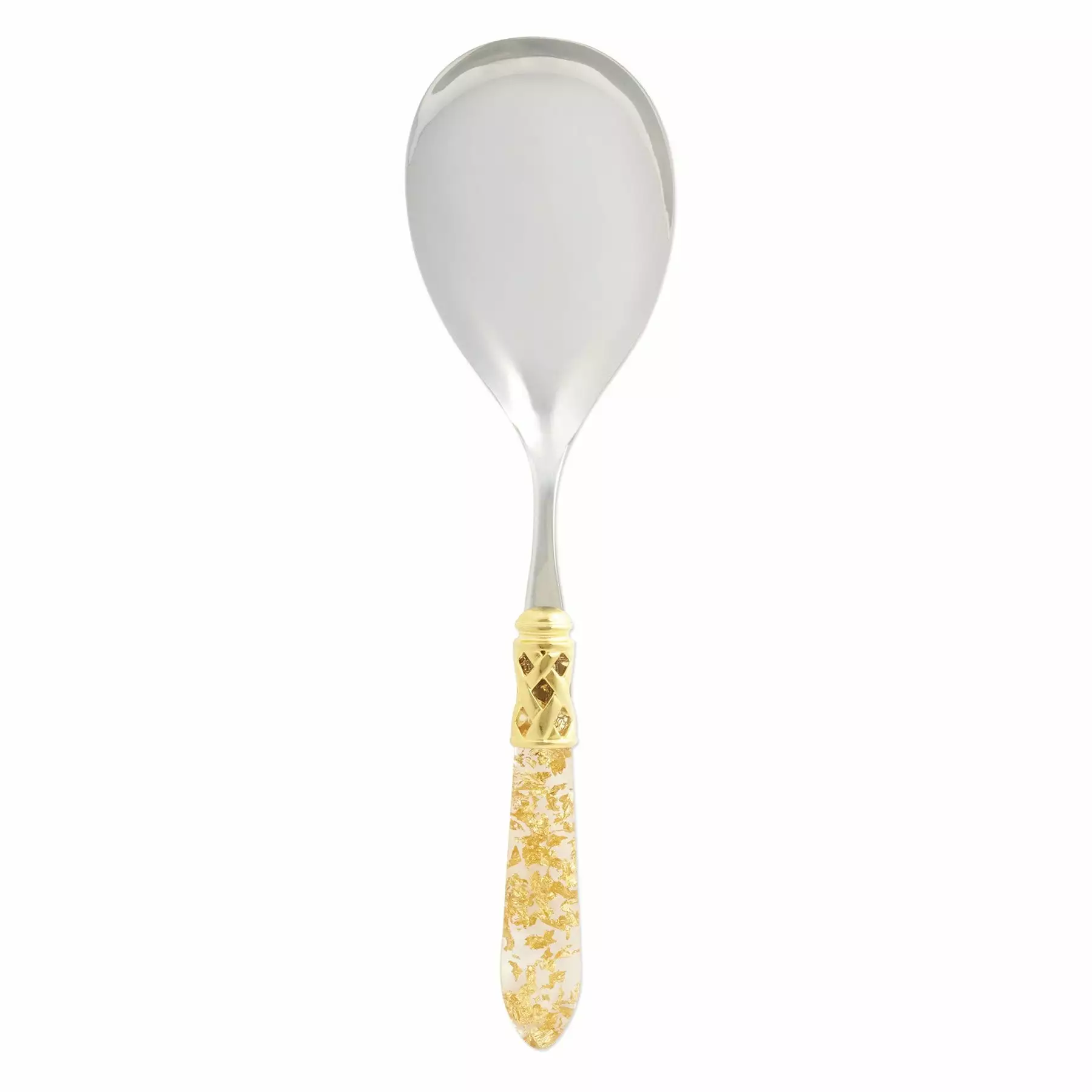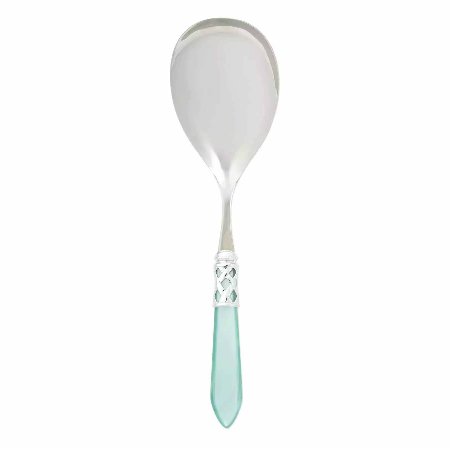 The Aladdin Brilliant Serving Spoon features elegant pearlized handles with the strength of high-grade acrylic and 18/10 stainless steel. This piece is also available in our antique finish.
