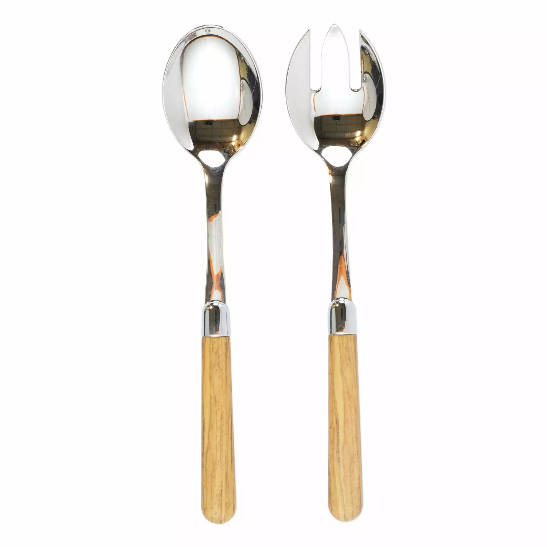 The Albero Salad Server Set features warm wood handles, with the strength of high-grade polyester and 18/10 stainless steel.