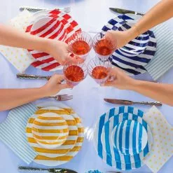 The Amalfitana Red Stripe Dinner Plate pays homage to the Amalfi Coast’s fresh seaside style, and its bold hues and crisp design bring a vibrant and lively look to your table.