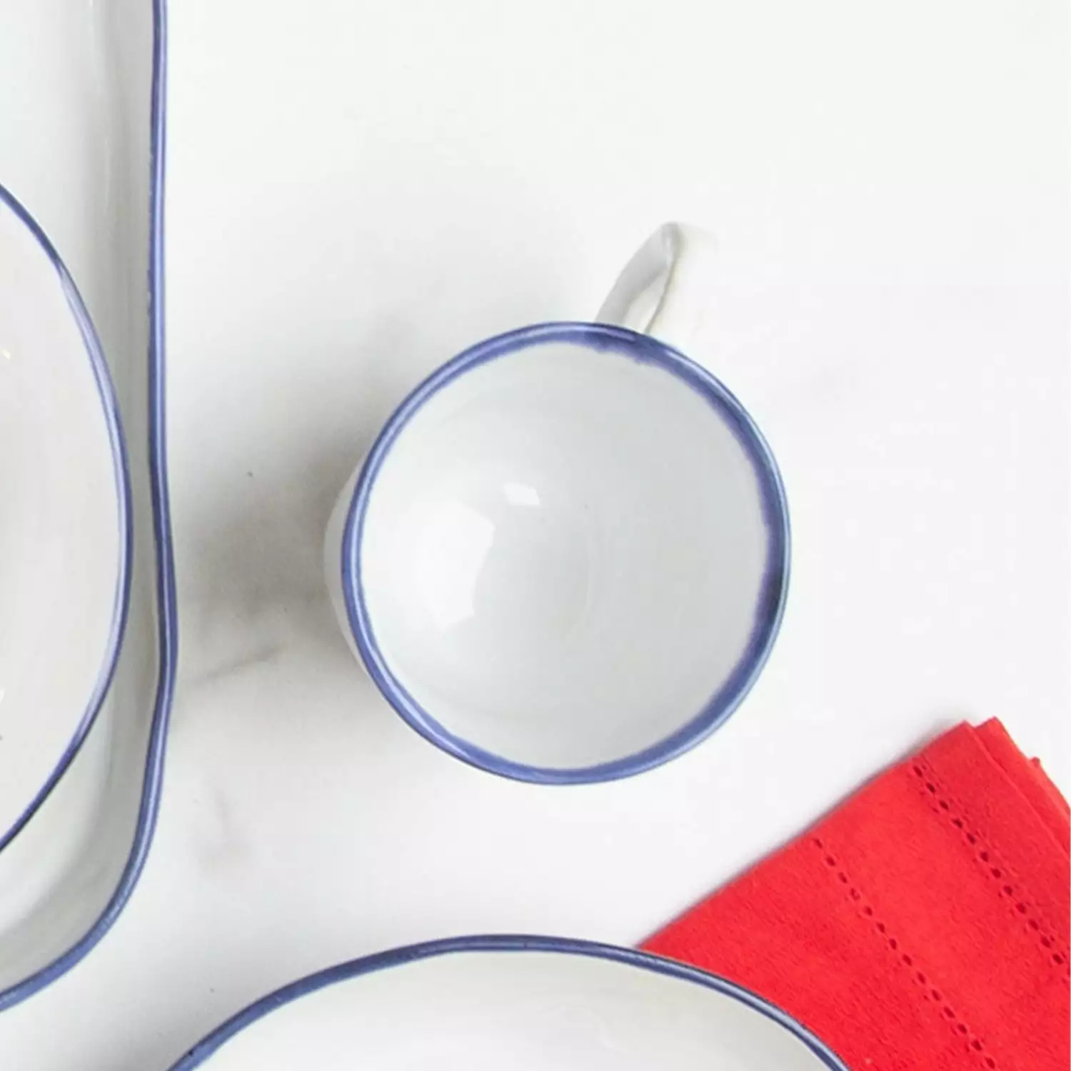 Highlighting the skill and craftsmanship of maestro artisan, Francesco Venzo, the Aurora Edge Mug adds intrigue to everyday dining. White and cobalt intermingle on durable stoneware to inevitably add subtle chicness to any tablescape.