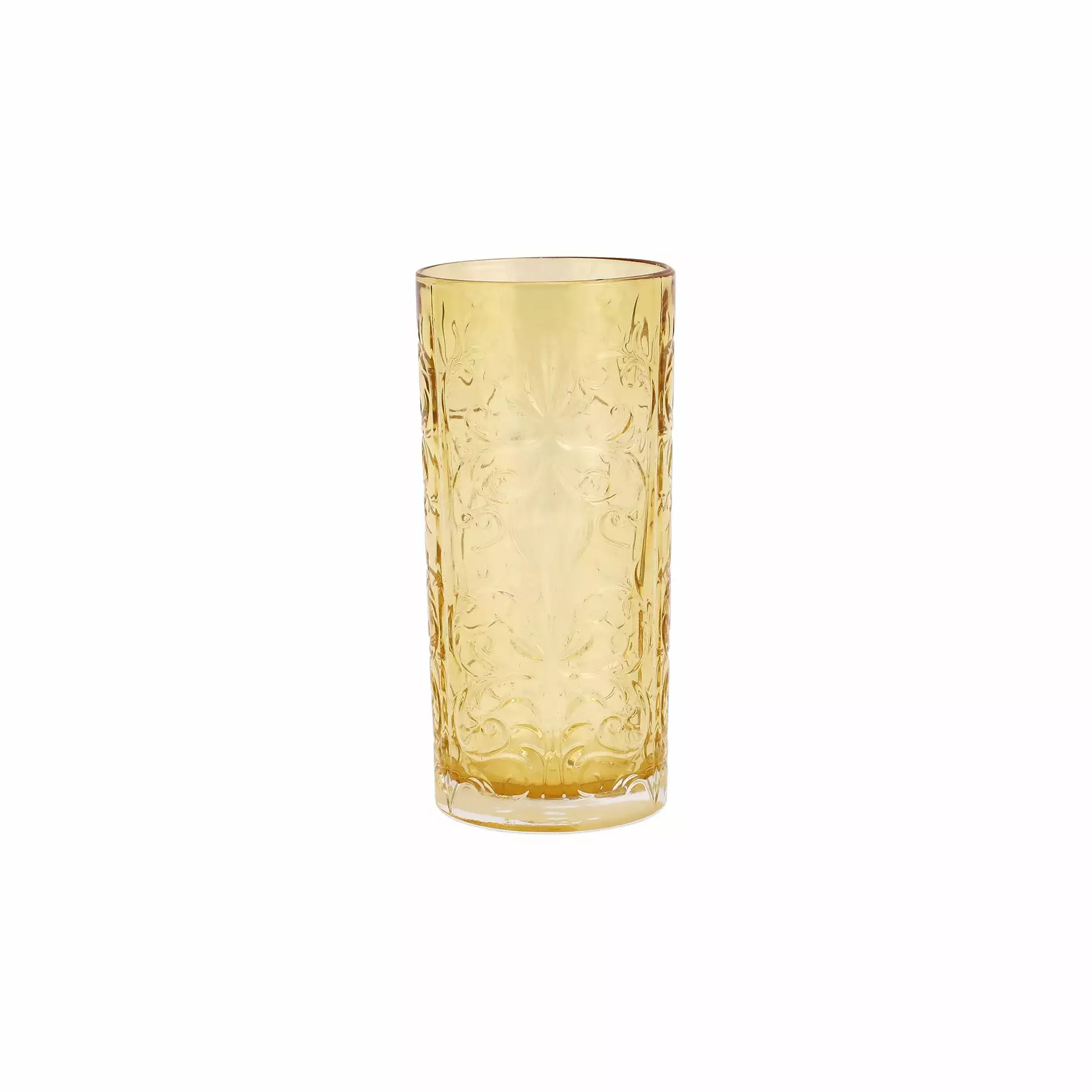 The artful etchings, stately shapes, and rich color of Barocco Amber High Ball honor Italy’s 17th century Baroque period and bring a gracious grandeur to your gatherings.