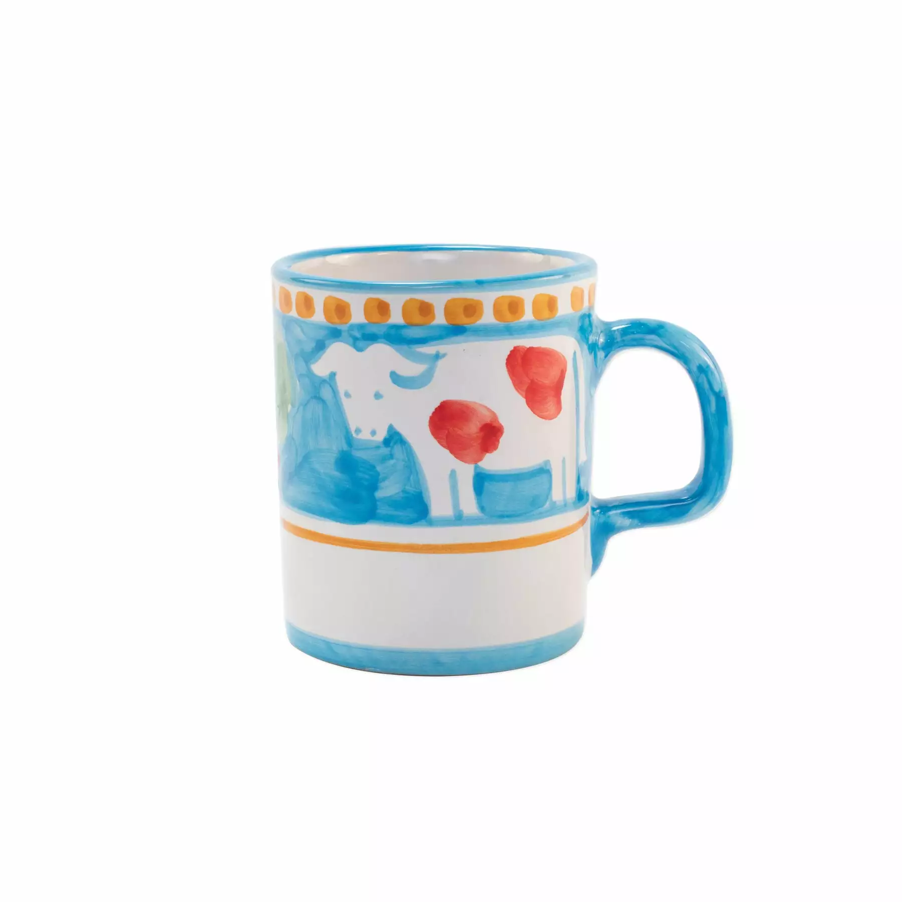 The Campagna Mucca Mug features a whimsical handpainted cow and is part of our flagship dinnerware colllection from the famed Amalfi Coast.