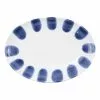 This colorful blue and red Campagna Pesce Rectangular Platter features whimsical handpainted fish swimming among green algae.