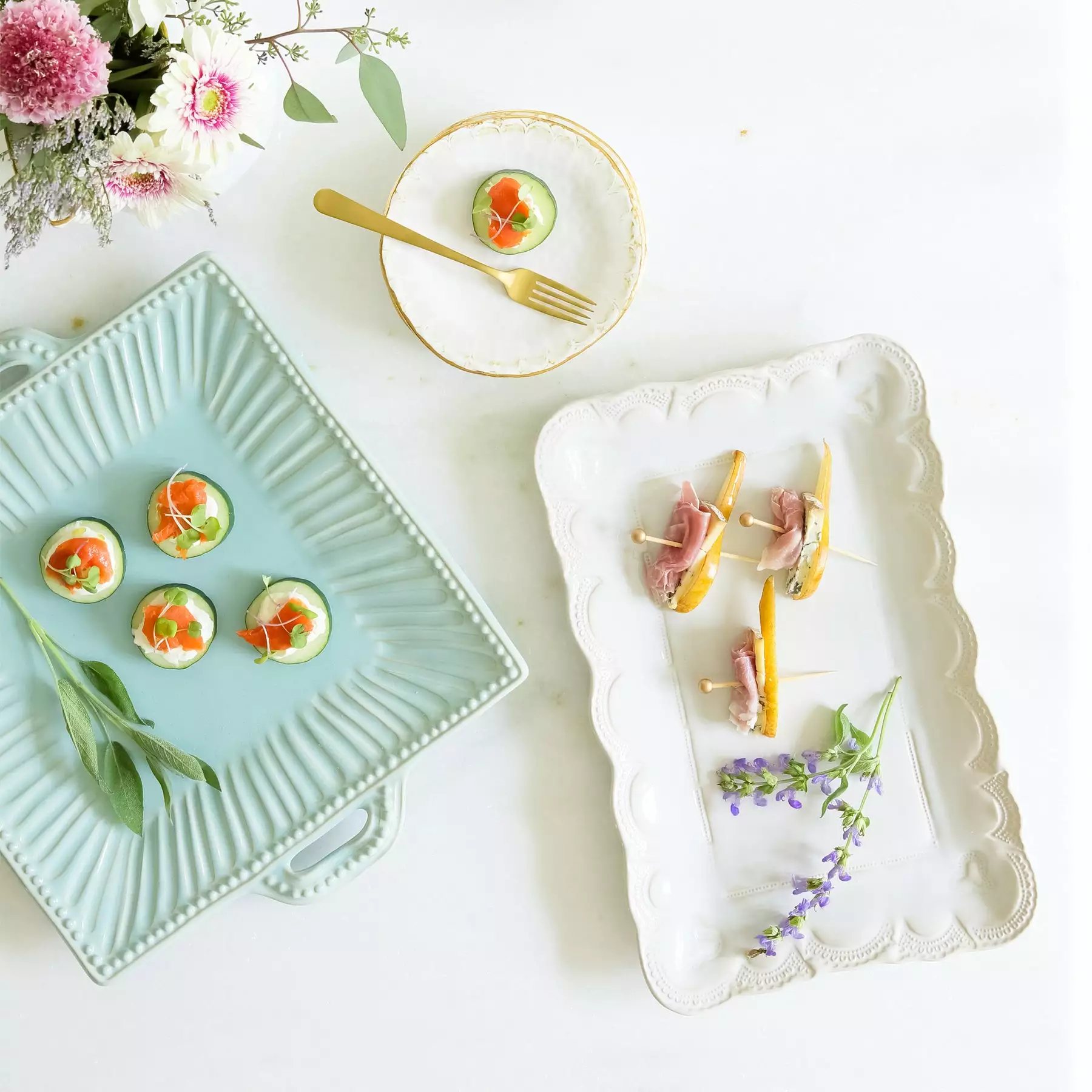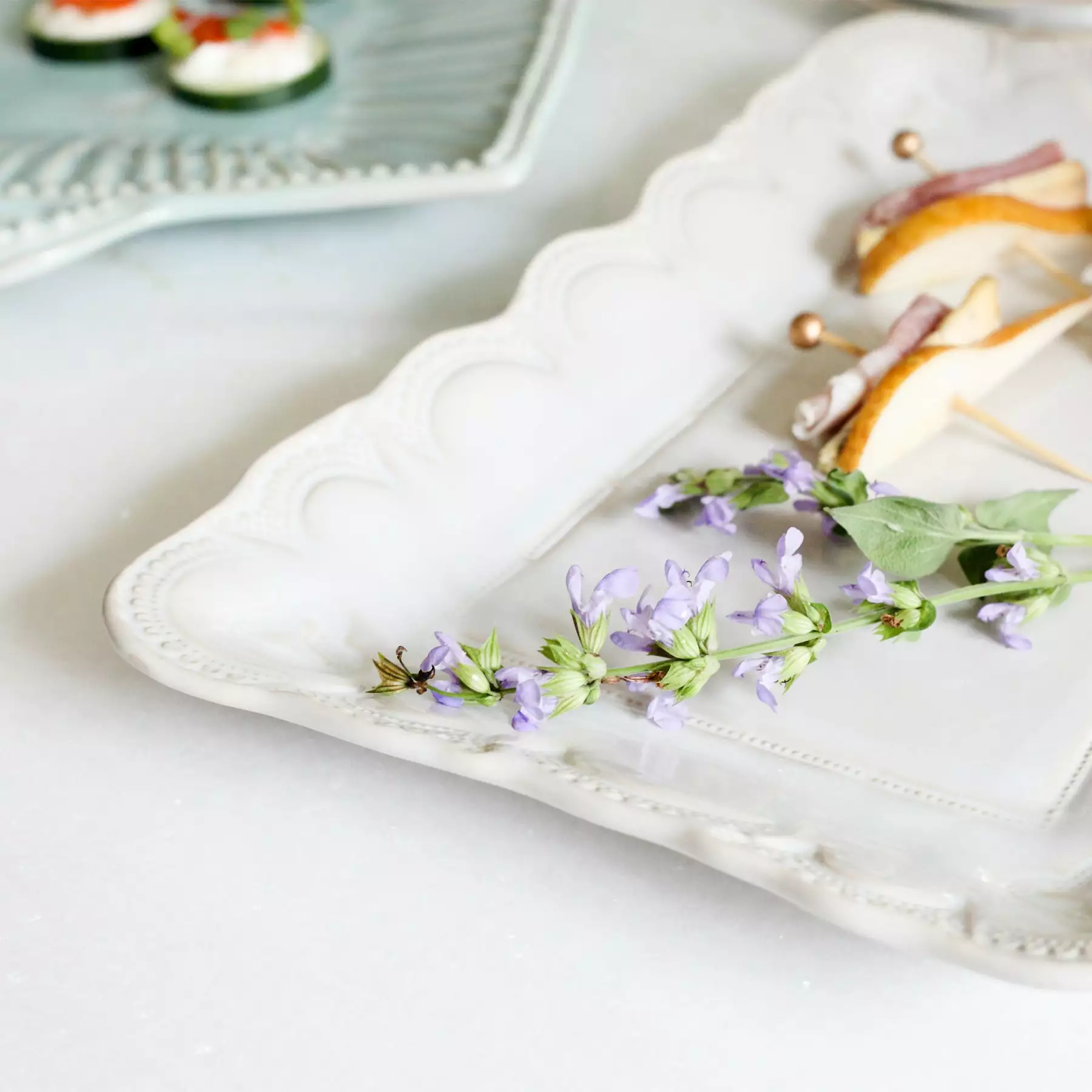 Italian for enchantment, Incanto is inspired by Italian art, the landscape, and Venetian history. The intricate designs on the Incanto Stone Lace Small Rectangular Platter pay homage to the famed lace of Venice’s Burano island, bringing beauty, elegance, and irresistible Italian style to your home.