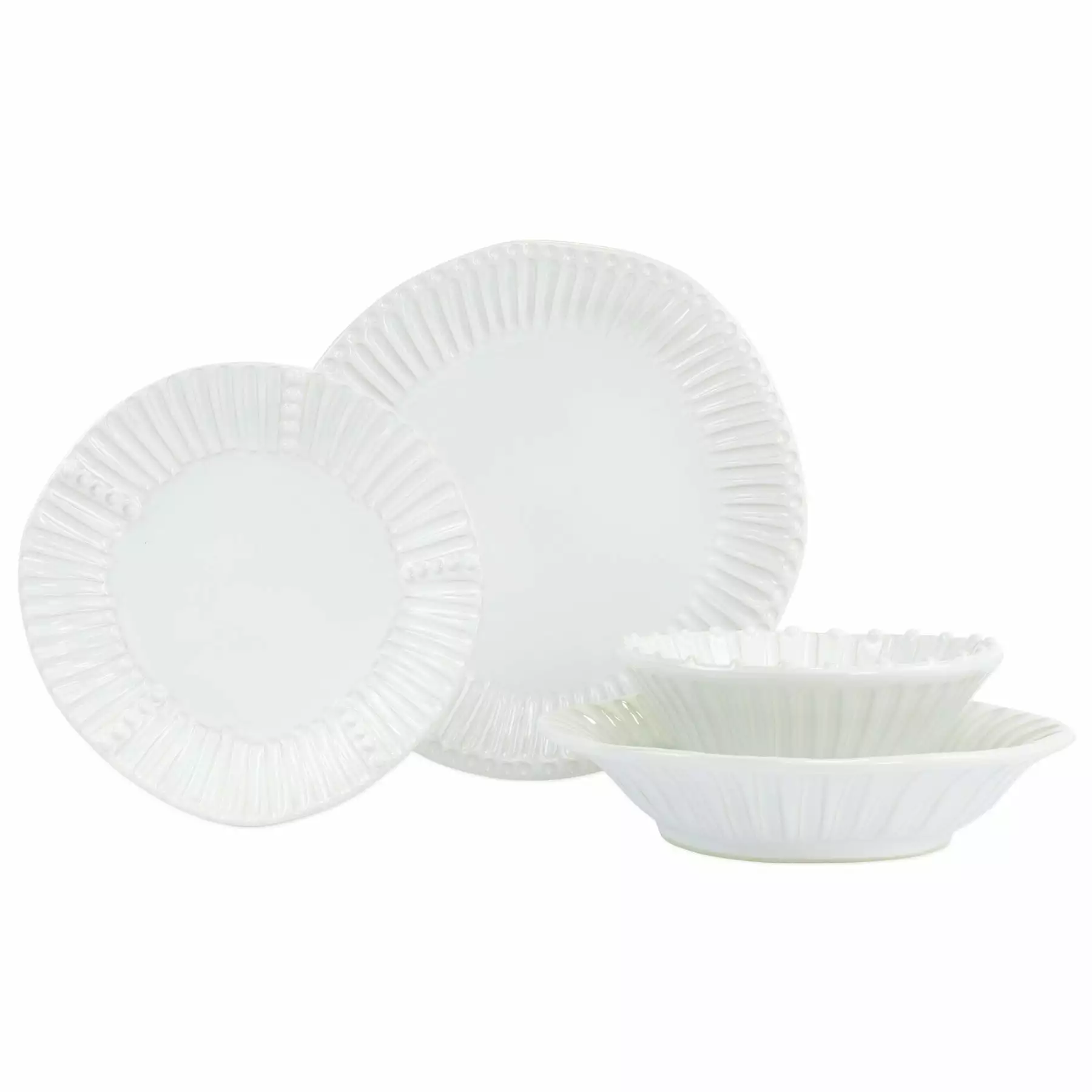 The Incanto Stone Stripe Four-Piece Place Setting resembles the beautiful columns of Palladian villas along the Brenta River in both its design and high-level performance. Handcrafted in Veneto, this beautiful set includes a dinner plate, salad plate, pasta bowl, and cereal bowl.
