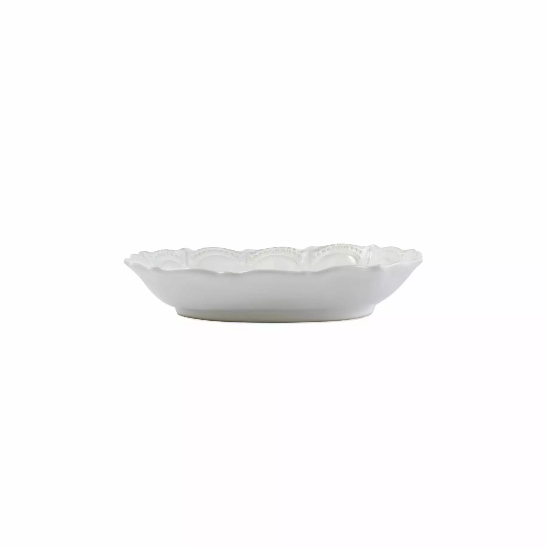 Italian for enchantment, Incanto is inspired by Italy’s art, landscape, and Venetian history. The intricate design on the Incanto Stone White Lace Small Oval Bowl pays homage to the famed lace of Venice’s Burano island, and bowl is a piece of art for your table.