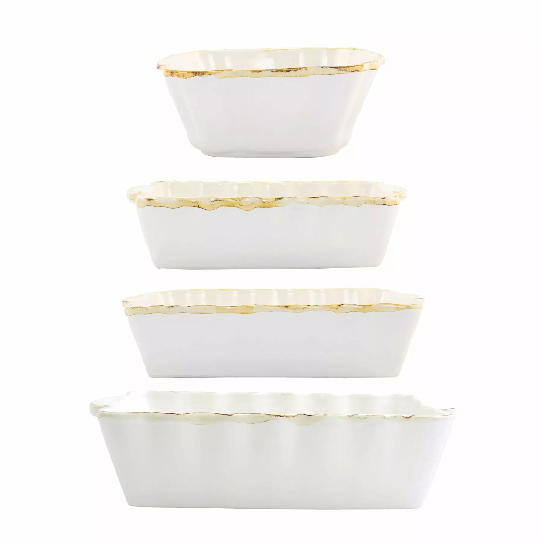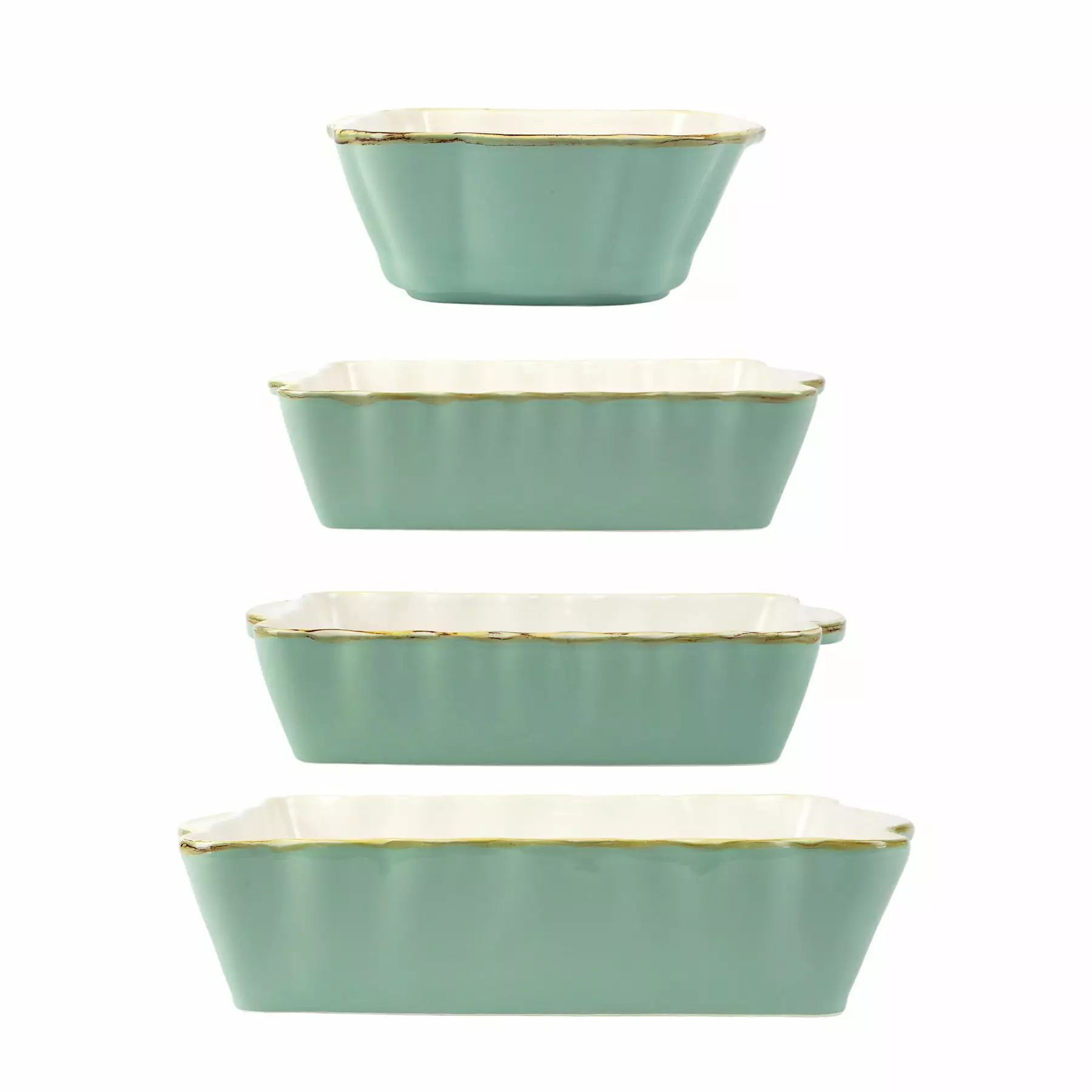 Ranging from Small to Large and Square to Rectangular, the Italian Bakers White 4-Piece Bakeware Essentials Set is the must-have for year-round entertaining. Weekly dinners and holiday gatherings alike will benefit from the handcrafted Italian design featuring ruffled edges.