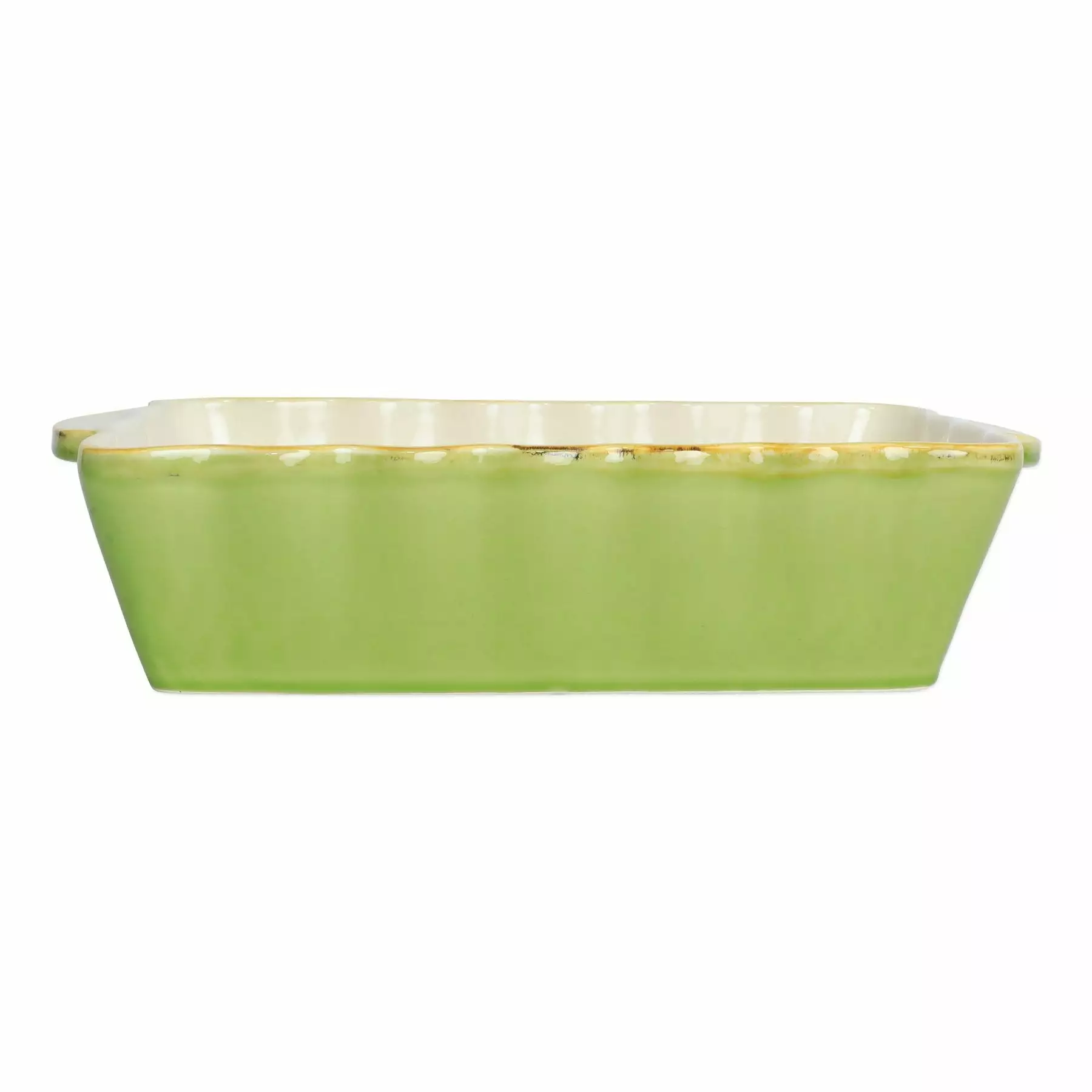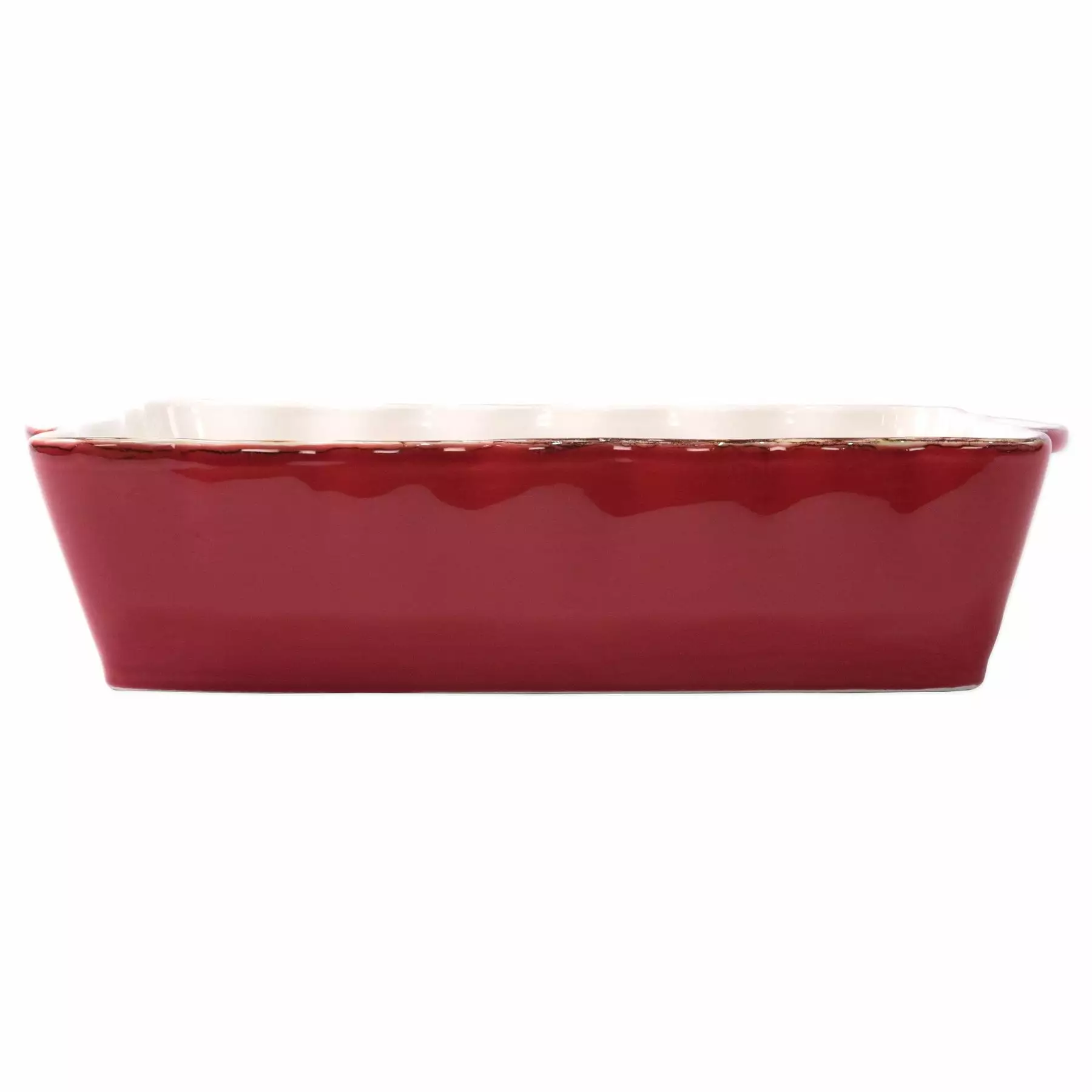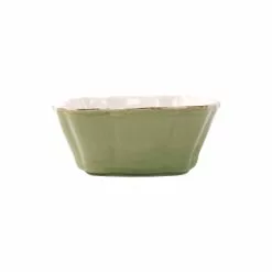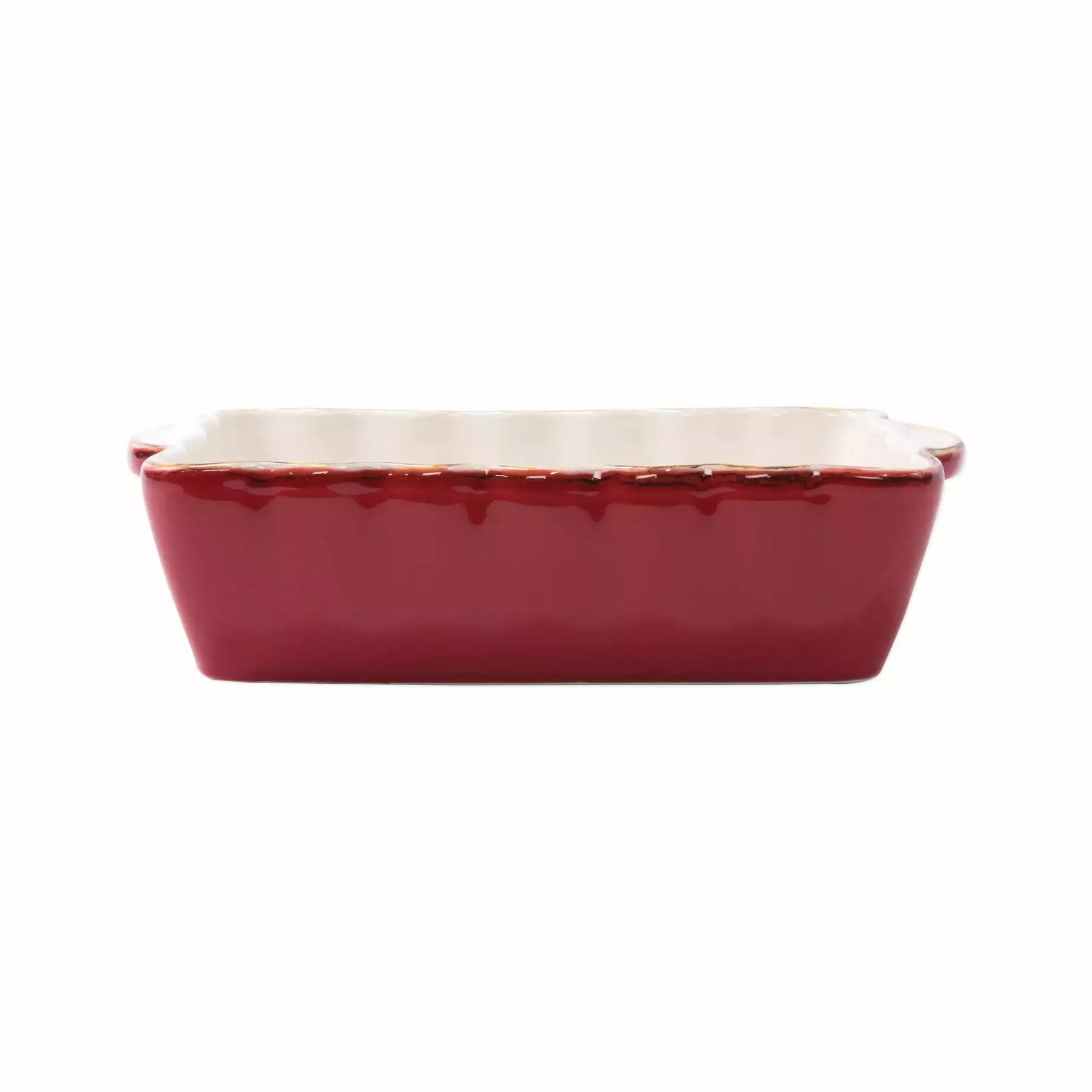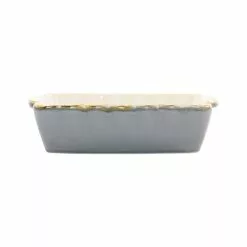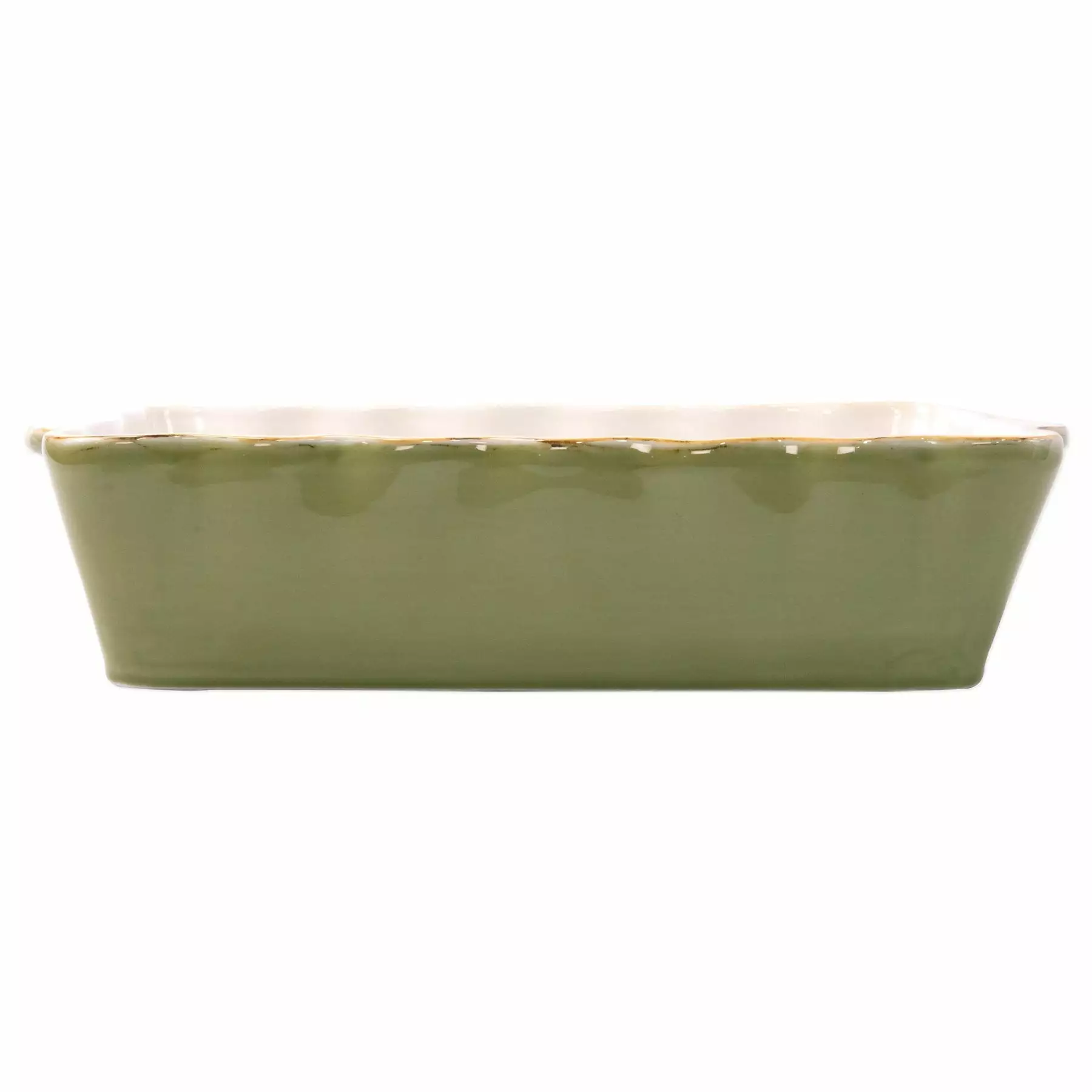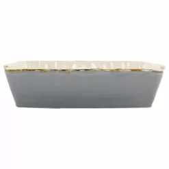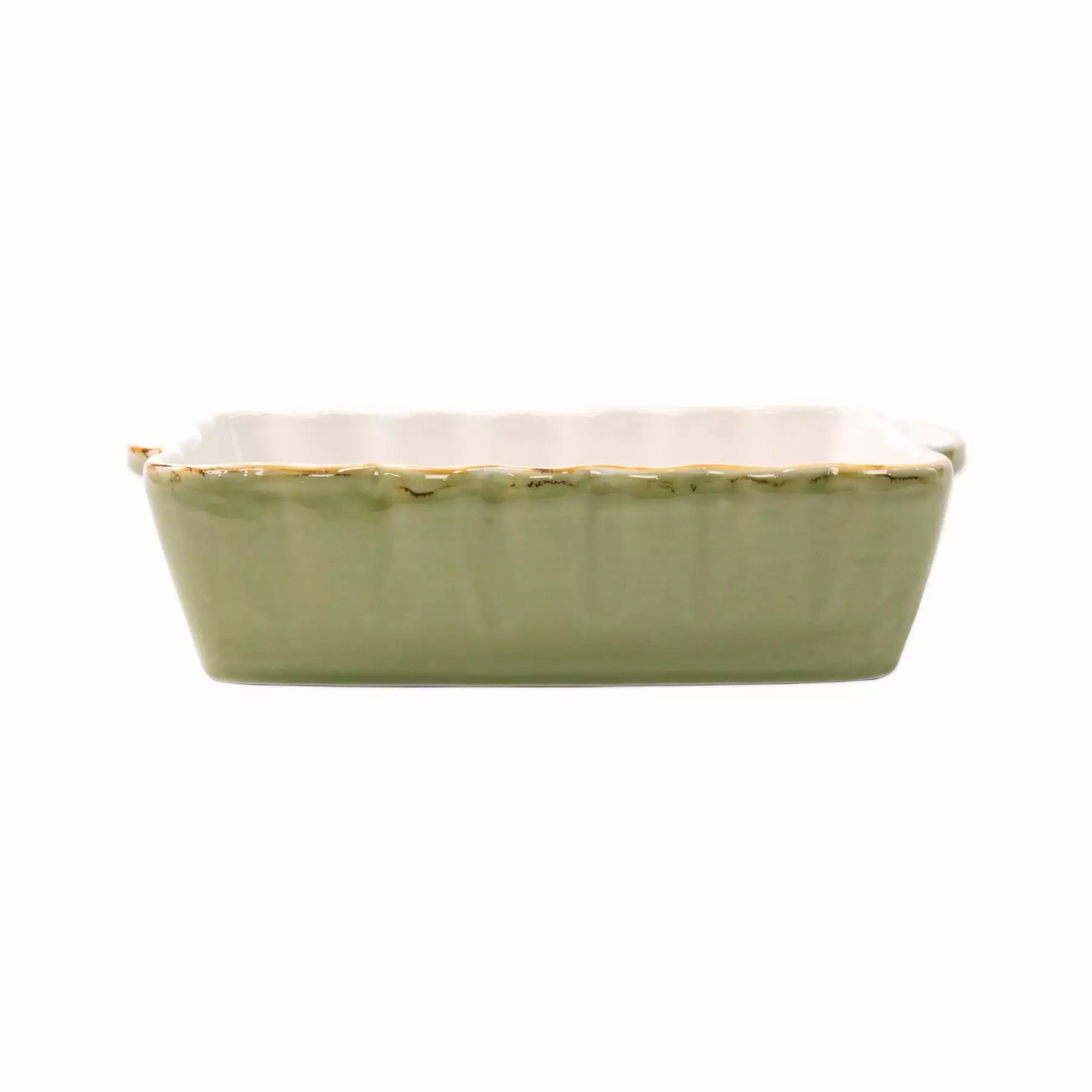 Oven Safe – VIETRI’s casserole and baking dishes can be used in most conventional ovens and dishwashers. They are handcrafted of very dense clays and fired at high temperatures, making them heat resistant up to 400°F. Do not use casserole lids in the oven, unless otherwise noted. Hot casseroles and baking dishes should never be placed on cool, damp, or unprotected surfaces. VIETRI bakeware should never be taken directly from the refrigerator to the oven due to the extreme temperature change, nor should it be placed directly from oven to freezer. The handles of these pieces are decorative and should not be used for support. Please remove the bakeware from the oven by holding the body of the dish, supporting the base.