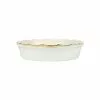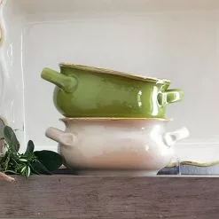 Oven Safe – VIETRI’s casserole and baking dishes can be used in most conventional ovens and dishwashers. They are handcrafted of very dense clays and fired at high temperatures, making them heat resistant up to 400°F. Do not use casserole lids in the oven, unless otherwise noted. Hot casseroles and baking dishes should never be placed on cool, damp, or unprotected surfaces. VIETRI bakeware should never be taken directly from the refrigerator to the oven due to the extreme temperature change, nor should it be placed directly from oven to freezer. The handles of these pieces are decorative and should not be used for support. Please remove the bakeware from the oven by holding the body of the dish, supporting the base.