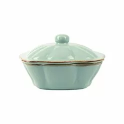 Oven Safe – VIETRI’s casserole and baking dishes can be used in most conventional ovens and dishwashers. They are handcrafted of very dense clays and fired at high temperatures, making them heat resistant up to 400°F. Do not use casserole lids in the oven, unless otherwise noted. Hot casseroles and baking dishes should never be placed on cool, damp, or unprotected surfaces. VIETRI bakeware should never be taken directly from the refrigerator to the oven due to the extreme temperature change, nor should it be placed directly from oven to freezer. The handles of these pieces are decorative and should not be used for support. Please remove the bakeware from the oven by holding the body of the dish, supporting the base.