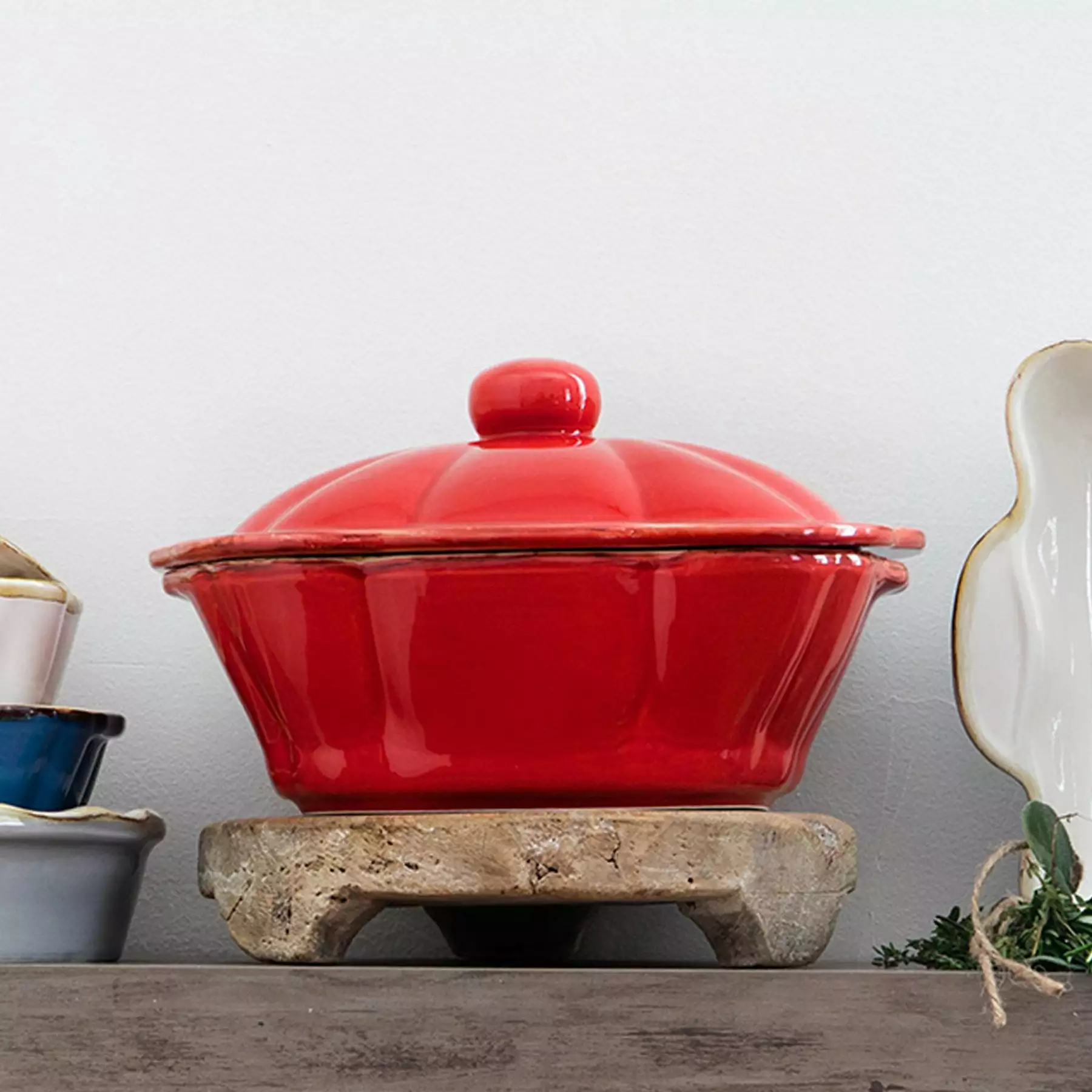Featuring scalloped edges and a bright, beautiful hue, the Italian Bakers Square Covered Casserole Dish is part of VIETRI’s newest line of bakeware. Handcrafted of Italian stoneware in Umbria, this unique size and fun shape is perfect for all gatherings.