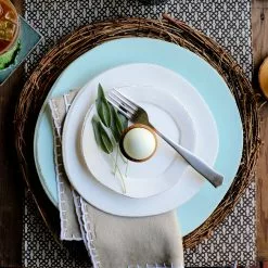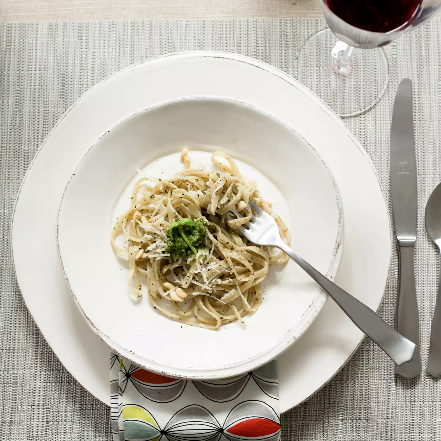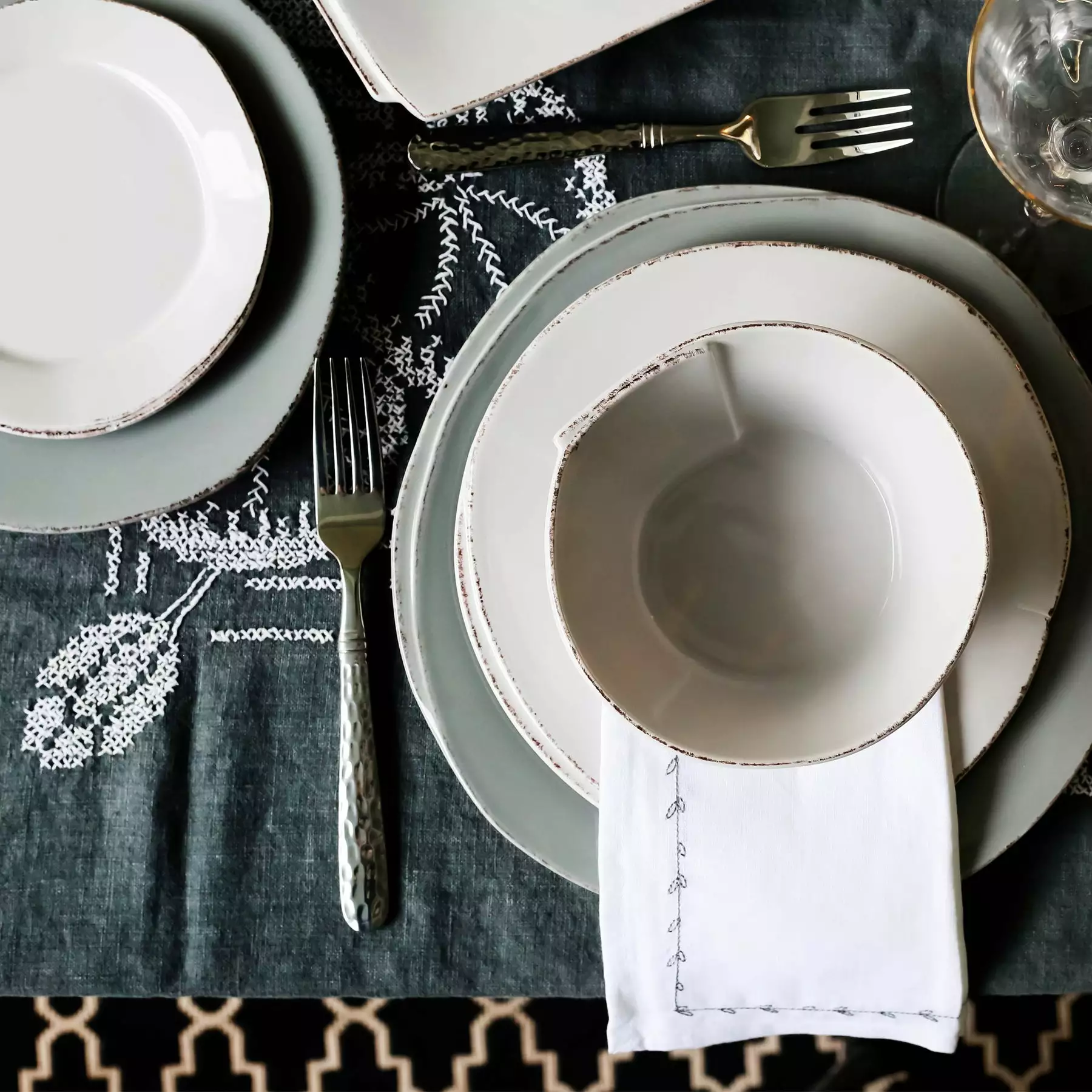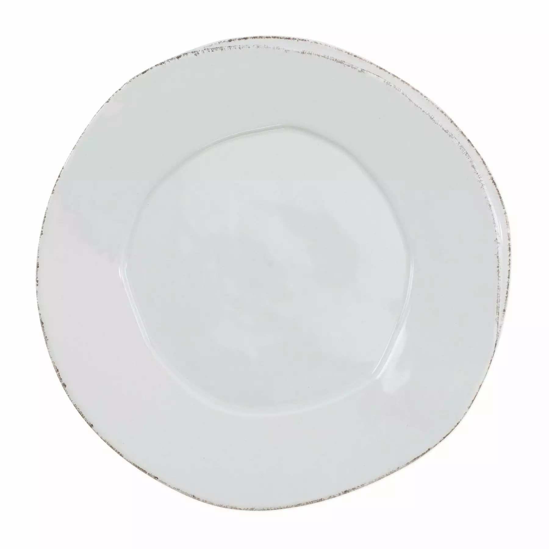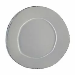 Beloved for its sophisticated simplicity, versatility, and durability, Lastra is our bestselling collection. The understated elegance, clean lines, and unique shape of the Lastra Dinner Plate make it a timeless choice for any table. Lastra’s design was inspired by the circular wooden slabs used for centuries to create the outer mold in cheesemaking throughout Italy. When fashioned together with twine, the hoop was left with a slight overlap to help maintain the shape of the cheese mold. Maestro molder Stefano Roselli incorporates the overlapping detail into the entire design, from its foot to its rim. A dark dusting on the edges of each piece suggests the ash that was used to preserve these cheeses and highlights each unique silhouette.