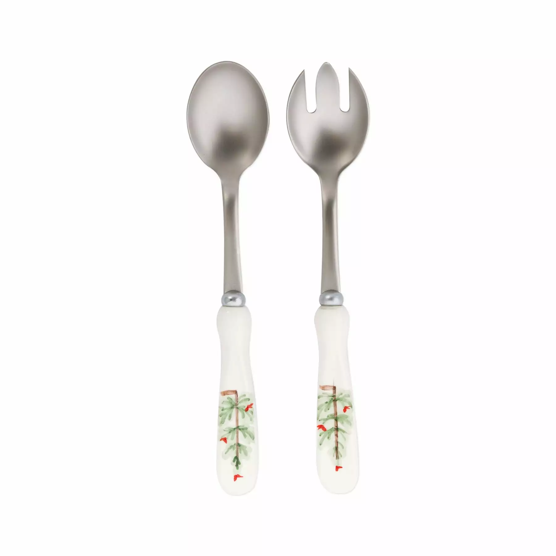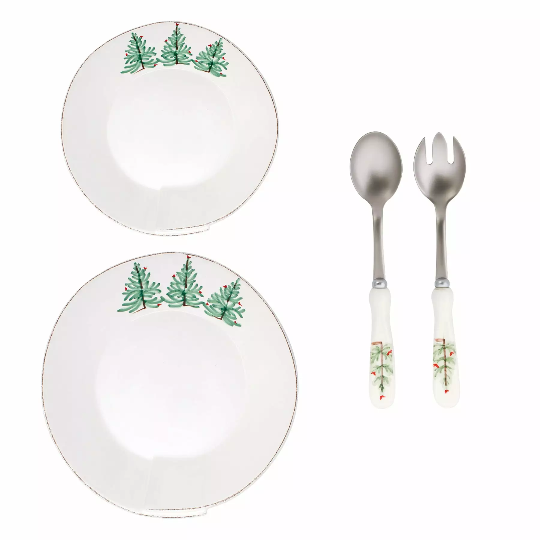 Make time for your loved ones when you gather around the cheerful design of the Lastra Holiday 3-Piece Serverware Set. Featuring handpainted fir trees, the Salad Server Set, Medium Shallow Serving Bowl, and Large Shallow Serving Bowl make it easy to delight in the magic of the holiday season.