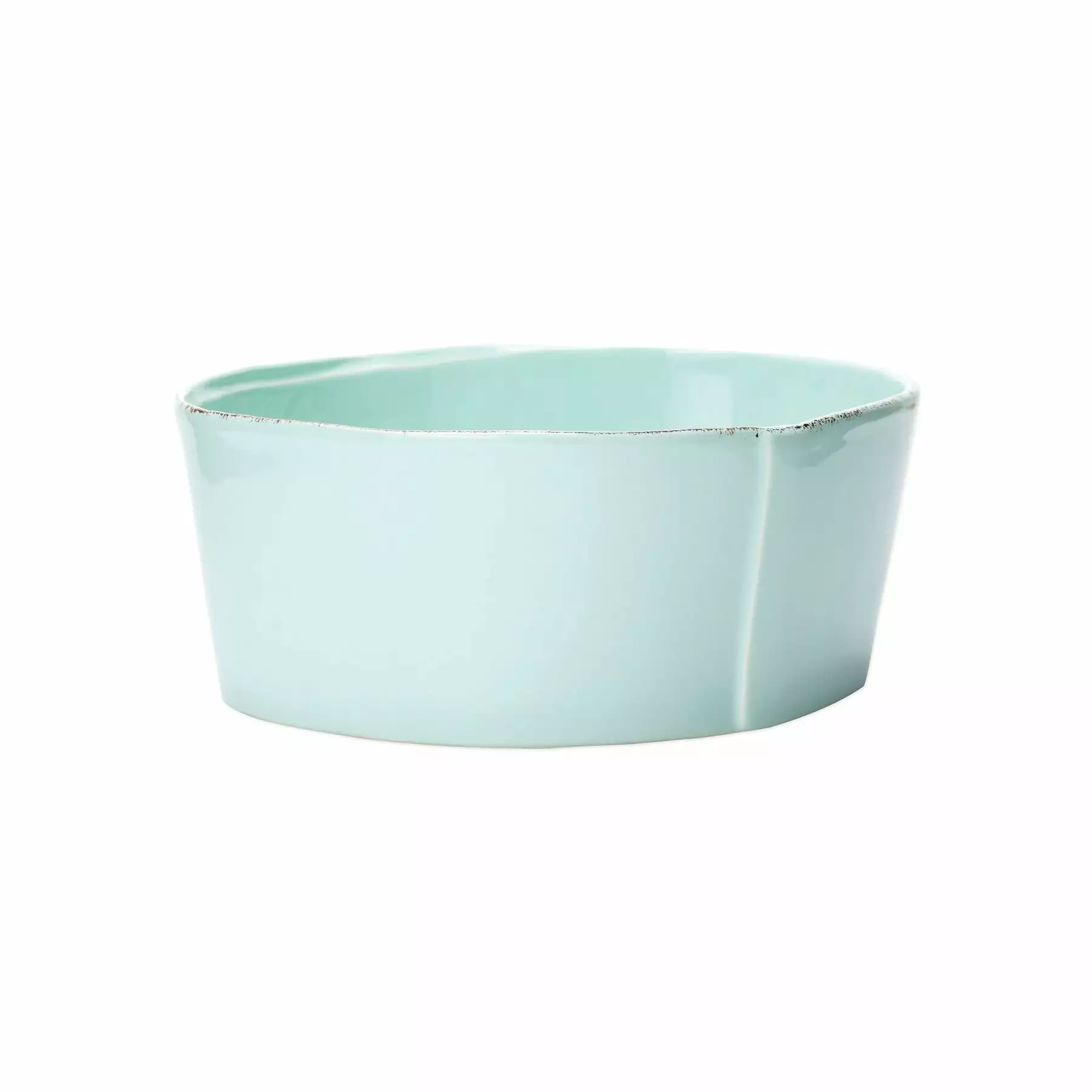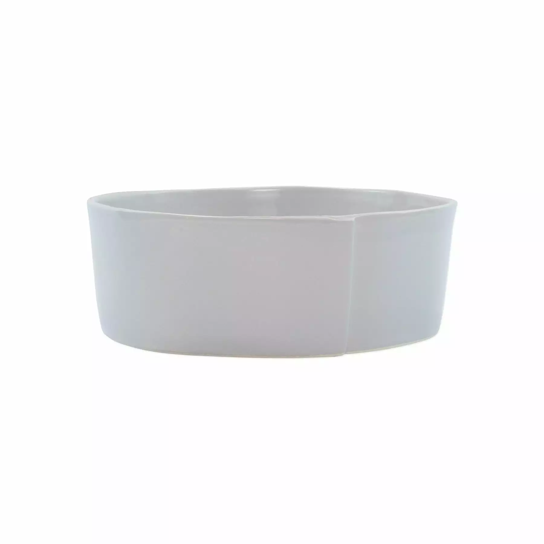 Beloved for its sophisticated simplicity, versatility, and durability, Lastra is our bestselling collection. The understated elegance, clean lines, and unique shape of the Lastra Medium Serving Bowl make it a timeless serving piece for your table. Lastra’s design was inspired by the circular wooden slabs used for centuries to create the outer mold in cheesemaking throughout Italy. When fashioned together with twine, the hoop was left with a slight overlap to help maintain the shape of the cheese mold. Maestro molder Stefano Roselli incorporates the overlapping detail into the entire design, from its foot to its rim. A dark dusting on the edges of each piece suggests the ash that was used to preserve these cheeses and highlights each unique silhouette.