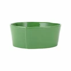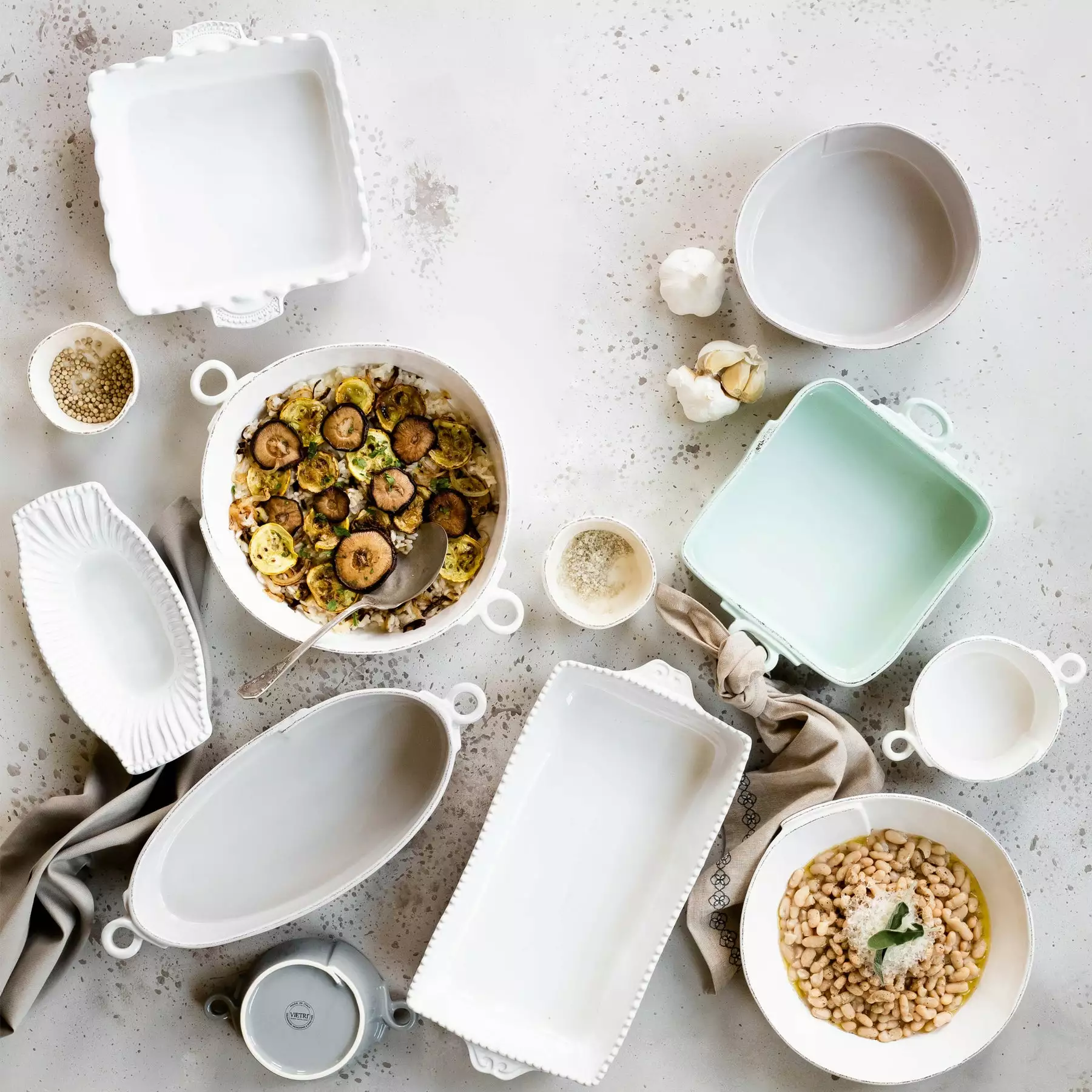 Oven Safe – VIETRI’s casserole and baking dishes can be used in most conventional ovens and dishwashers. They are handcrafted of very dense clays and fired at high temperatures, making them heat resistant up to 400°F. Do not use casserole lids in the oven, unless otherwise noted. Hot casseroles and baking dishes should never be placed on cool, damp, or unprotected surfaces. VIETRI bakeware should never be taken directly from the refrigerator to the oven due to the extreme temperature change, nor should it be placed directly from oven to freezer. The handles of these pieces are decorative and should not be used for support. Please remove the bakeware from the oven by holding the body of the dish, supporting the base.