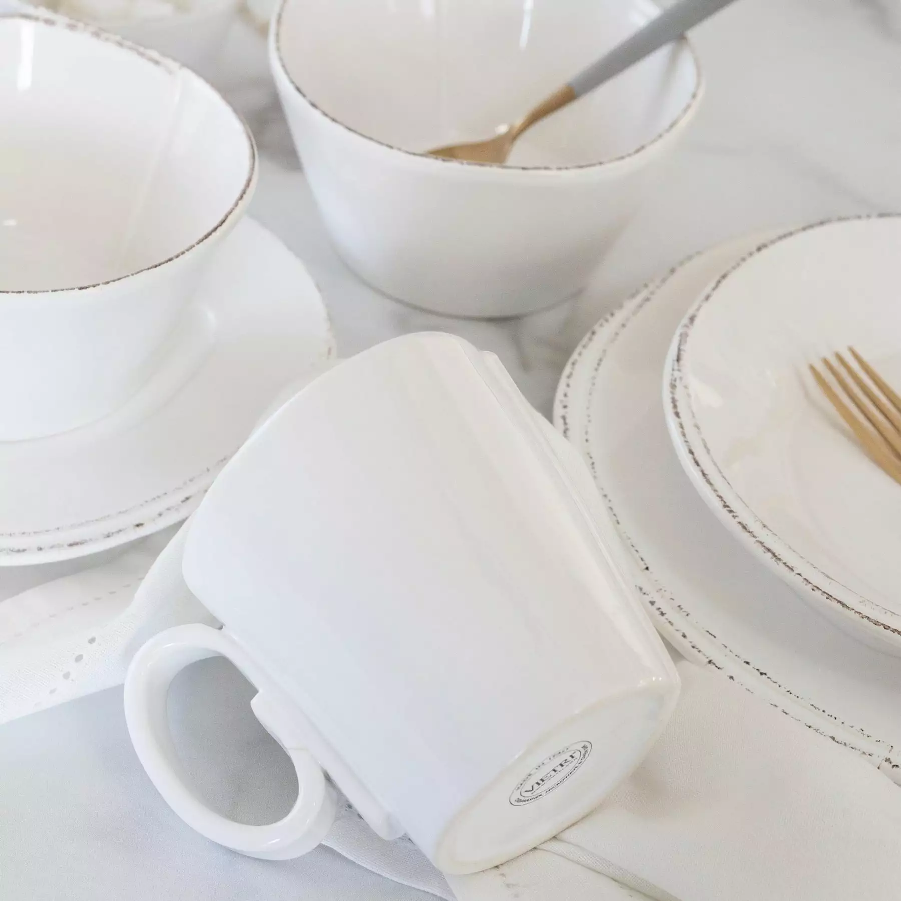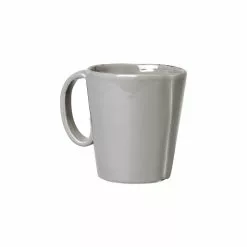 Beloved for its sophisticated simplicity, versatility, and durability, Lastra is our bestselling collection. The understated elegance, clean lines, and unique shape of the Lastra Mug make it a timeless choice for your coffee, tea, or hot chocolate. Lastra’s design was inspired by the circular wooden slabs used for centuries to create the outer mold in cheesemaking throughout Italy. When fashioned together with twine, the hoop was left with a slight overlap to help maintain the shape of the cheese mold. Maestro molder Stefano Roselli incorporates the overlapping detail into the entire design, from its foot to its rim. A dark dusting on the edges of each piece suggests the ash that was used to preserve these cheeses and highlights each unique silhouette.