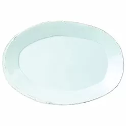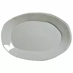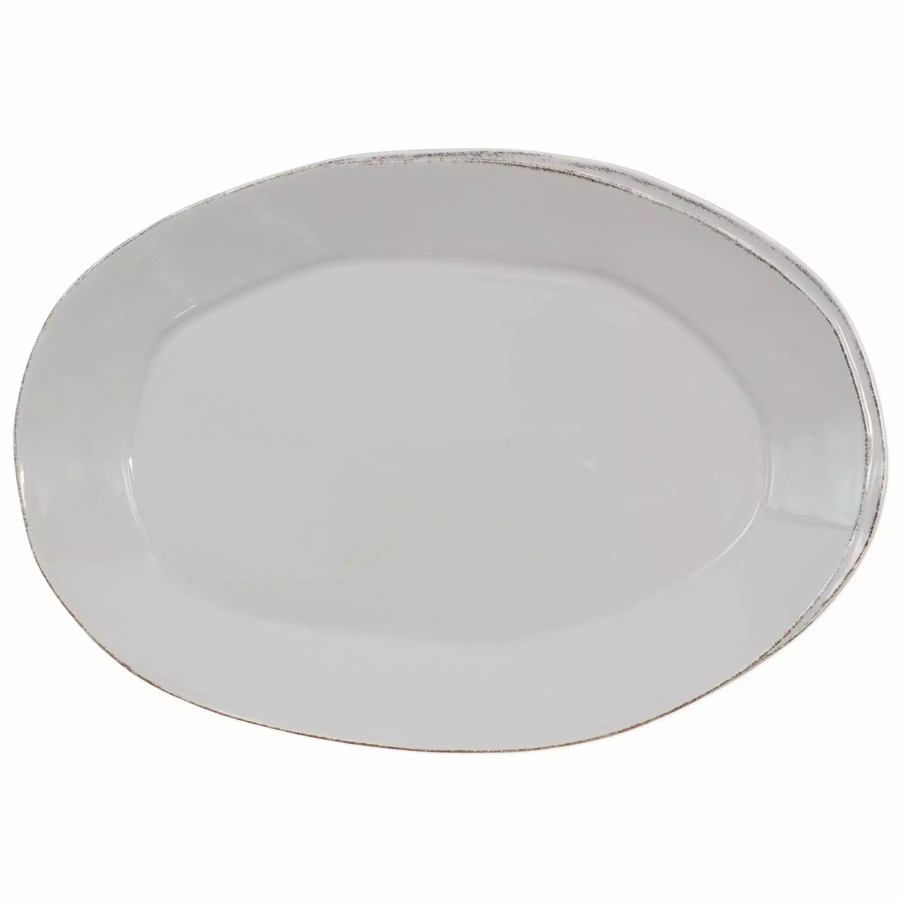 Beloved for its sophisticated simplicity, versatility, and durability, Lastra is our bestselling collection. The understated elegance, clean lines, and unique shape of the Lastra Oval Platter make a timeless and elegant serving piece for any table. Lastra’s design was inspired by the circular wooden slabs used for centuries to create the outer mold in cheesemaking throughout Italy. When fashioned together with twine, the hoop was left with a slight overlap to help maintain the shape of the cheese mold. Maestro molder Stefano Roselli incorporates the overlapping detail into the entire design, from its foot to its rim. A dark dusting on the edges of each piece suggests the ash that was used to preserve these cheeses and highlights each unique silhouette.