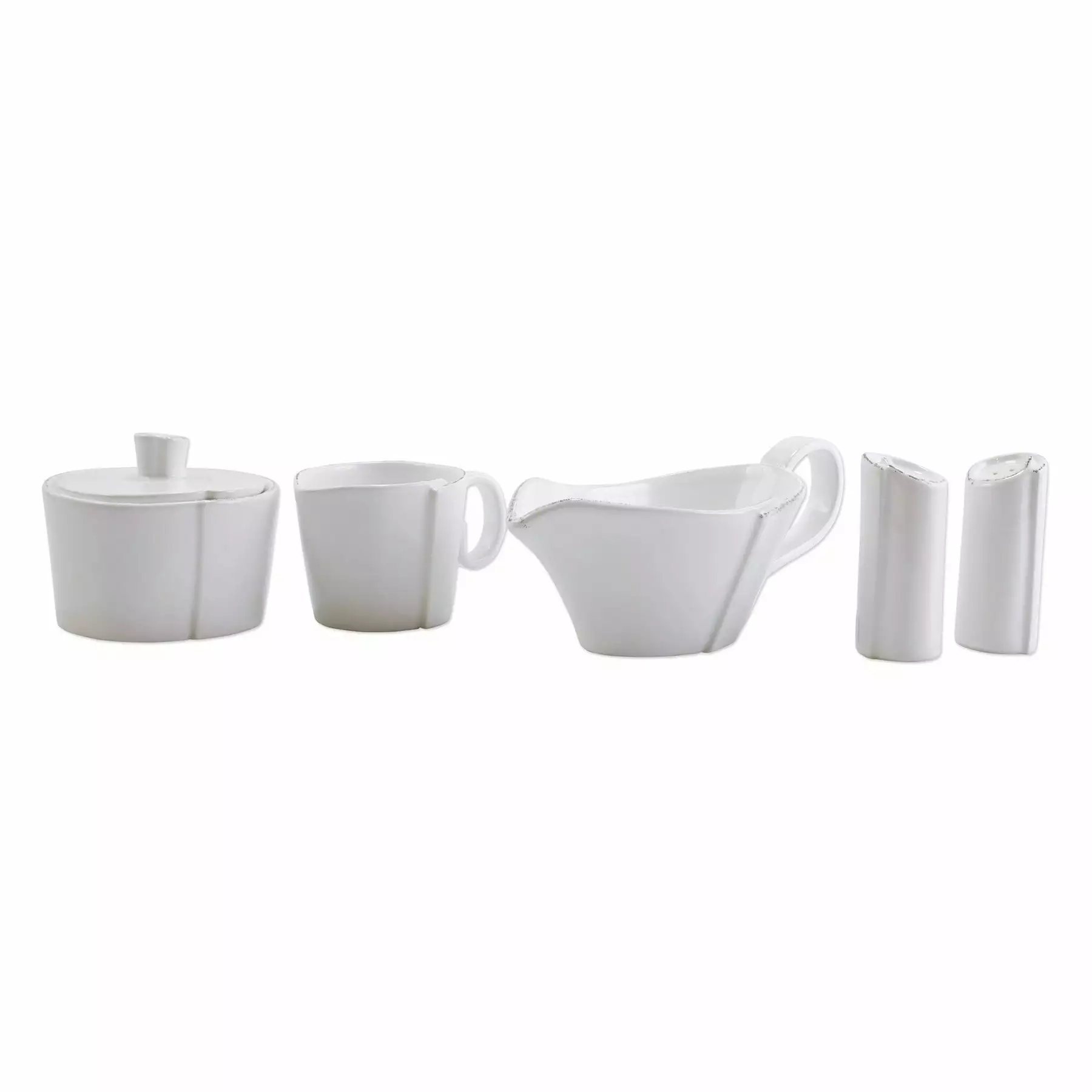 Beloved for its sophisticated simplicity, versatility, and durability, Lastra is our bestselling collection. The Lastra White Accessories Set includes the Lastra White Sugar, the Lastra White Creamer, the Lastra White Salt and Pepper, and the Lastra White Sauce Server. This set is an instant way to elevate your home. Lastra’s design was inspired by the circular wooden slabs used for centuries to create the outer mold in cheesemaking throughout Italy. When fashioned together with twine, the hoop was left with a slight overlap to help maintain the shape of the cheese mold. Maestro molder Stefano Roselli incorporates the overlapping detail into the entire design, from its foot to its rim. A dark dusting on the edges of each piece suggests the ash that was used to preserve these cheeses and highlights each unique silhouette.