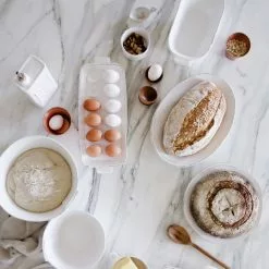 Beloved for its sophisticated simplicity, versatility, and durability, Lastra is our bestselling collection. The understated elegance, clean lines, and unique shape of the Lastra White Small Oval Baker make it a timeless baking and serving piece. Lastra’s design was inspired by the circular wooden slabs used for centuries to create the outer mold in cheesemaking throughout Italy. When fashioned together with twine, the hoop was left with a slight overlap to help maintain the shape of the cheese mold. Maestro molder Stefano Roselli incorporates the overlapping detail into the entire design, from its foot to its rim. A dark dusting on the edges of each piece suggests the ash that was used to preserve these cheeses and highlights each unique silhouette.