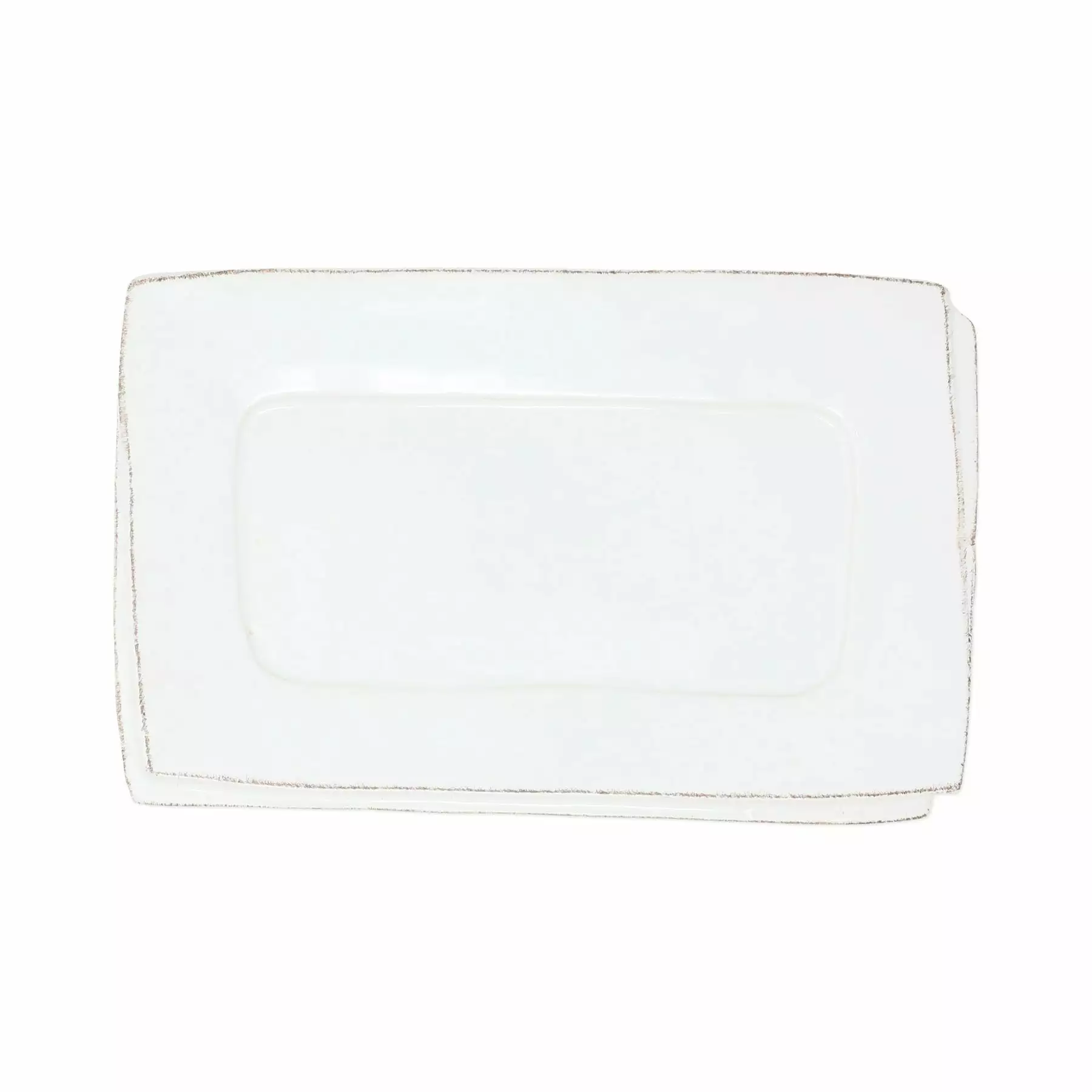 Beloved for its sophisticated simplicity, versatility, and durability, Lastra is our bestselling collection. The understated elegance, clean lines, and unique shape of the Lastra White Small Rectangular Tray make it a timeless choice for your home. Lastra’s design was inspired by the circular wooden slabs used for centuries to create the outer mold in cheesemaking throughout Italy. When fashioned together with twine, the hoop was left with a slight overlap to help maintain the shape of the cheese mold. Maestro molder Stefano Roselli incorporates the overlapping detail into the entire design, from its foot to its rim. A dark dusting on the edges of each piece suggests the ash that was used to preserve these cheeses and highlights each unique silhouette.
