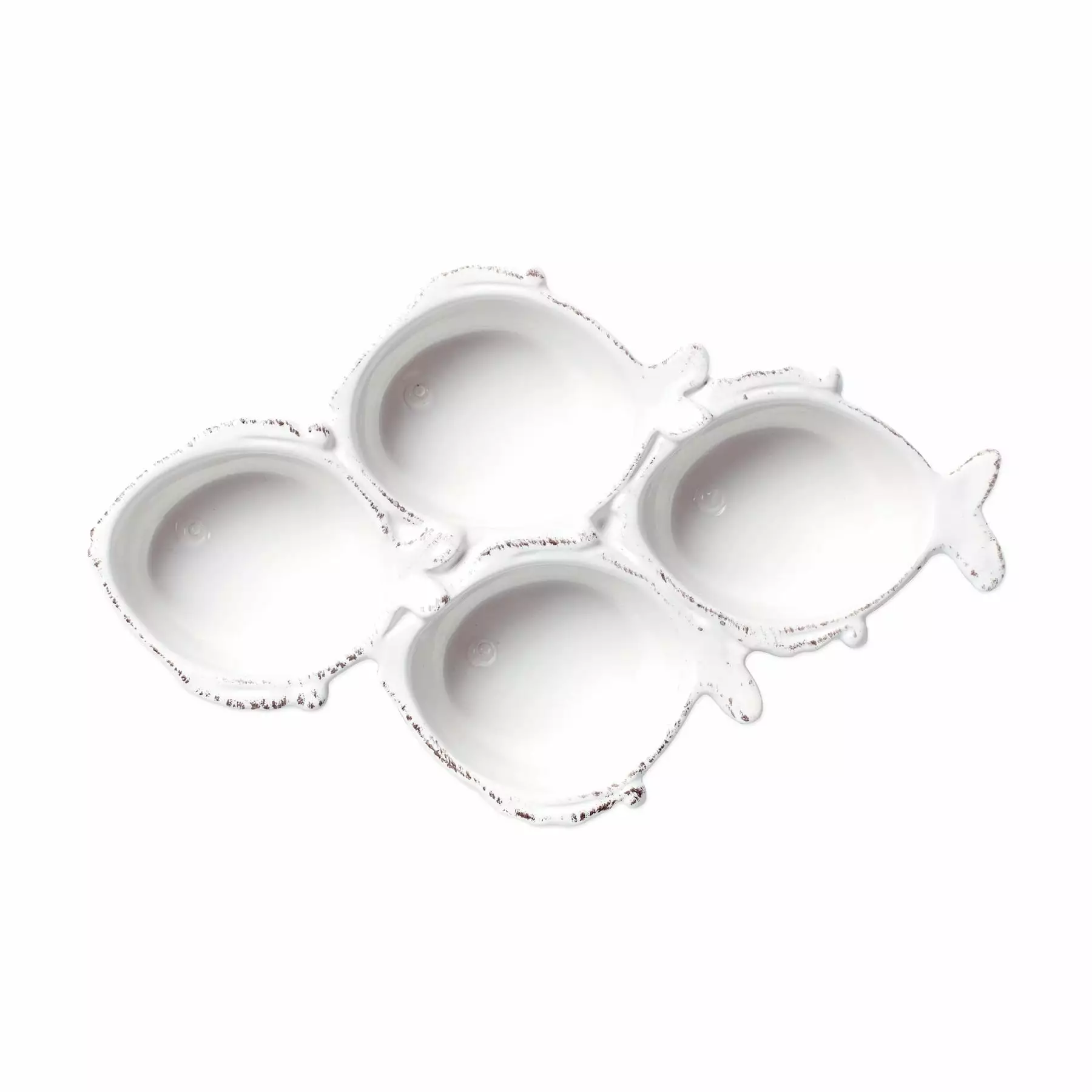 The Melamine Lastra Fish White Four-Part Server combines the charming shapes of Lastra Fish with durable melamine, BPA free. Delight those in your home with these four swimming fish as you serve nuts, olives, and other bite-sized treats.