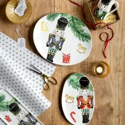 Maestro artisan, Gianluca Fabbro, recreates a Christmas classic with bright colors and a cheerful holiday design on the Nutcrackers Small Oval Platter, inspiring new family traditions with a collectible to be passed down from generation to generation.