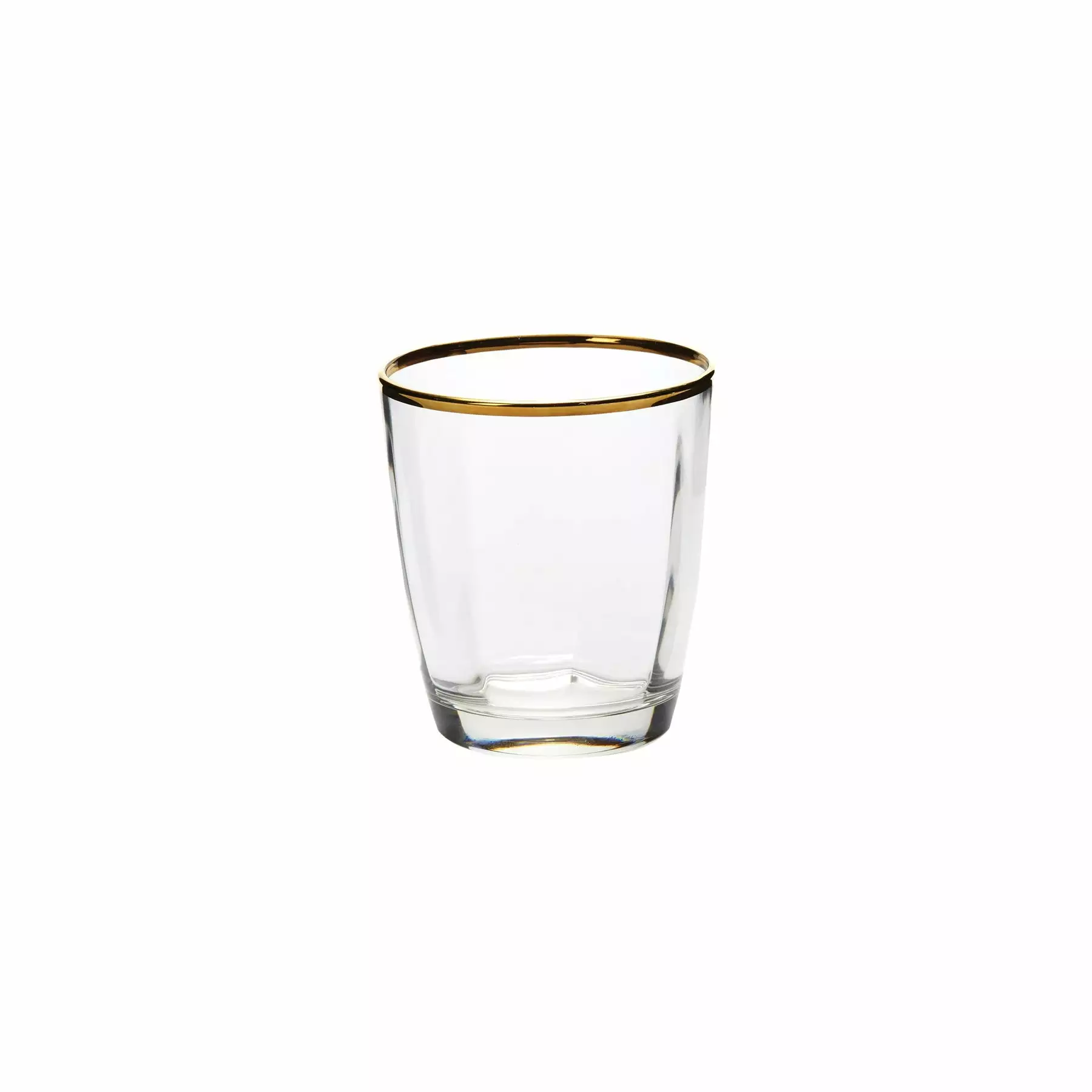 Adorn your table with the classic Optical Gold Double Old Fashioned Glasses. The elegant lines and delicate gilded rim add effortless embellishment to any table. The classic style makes this glass a perfect gift for men and women alike.