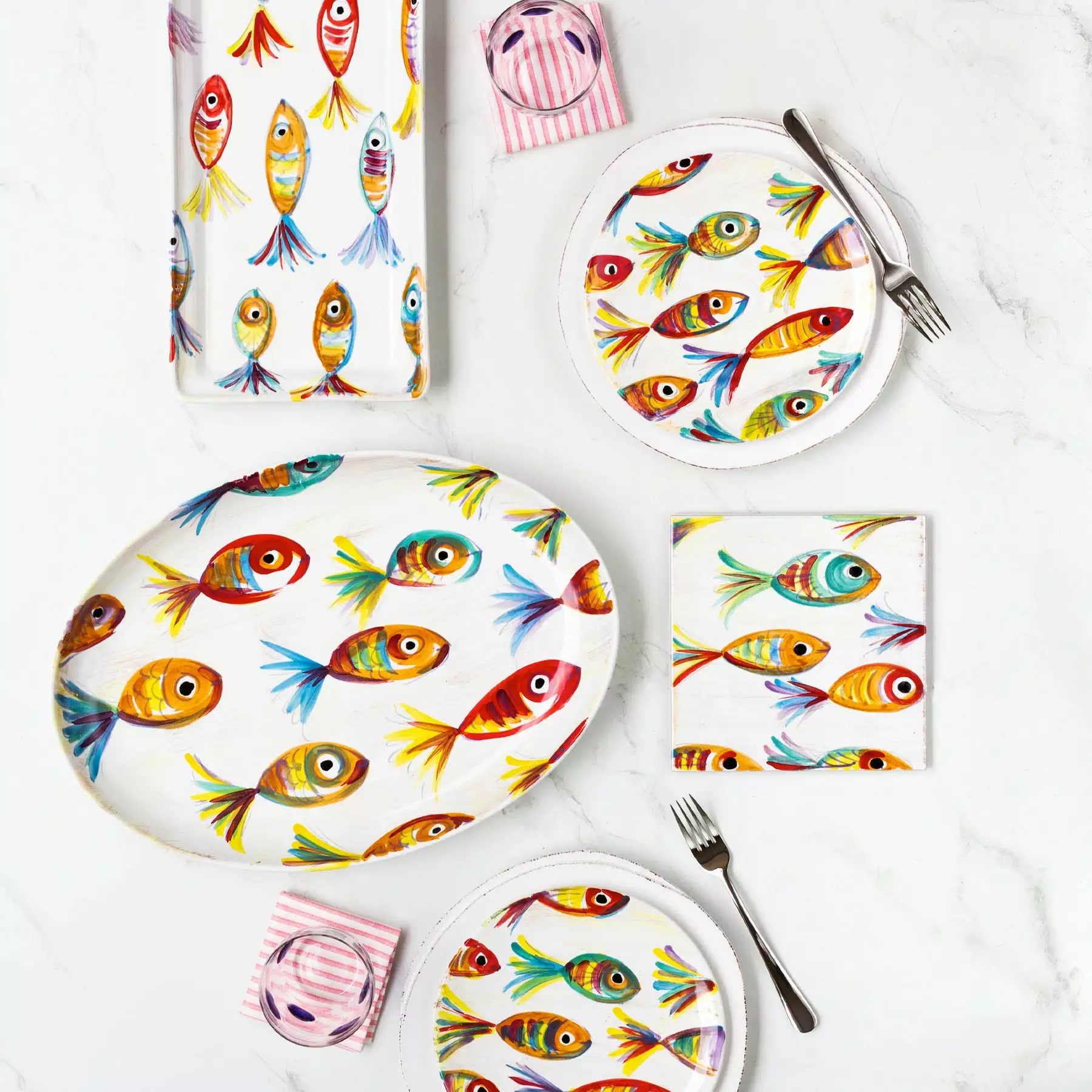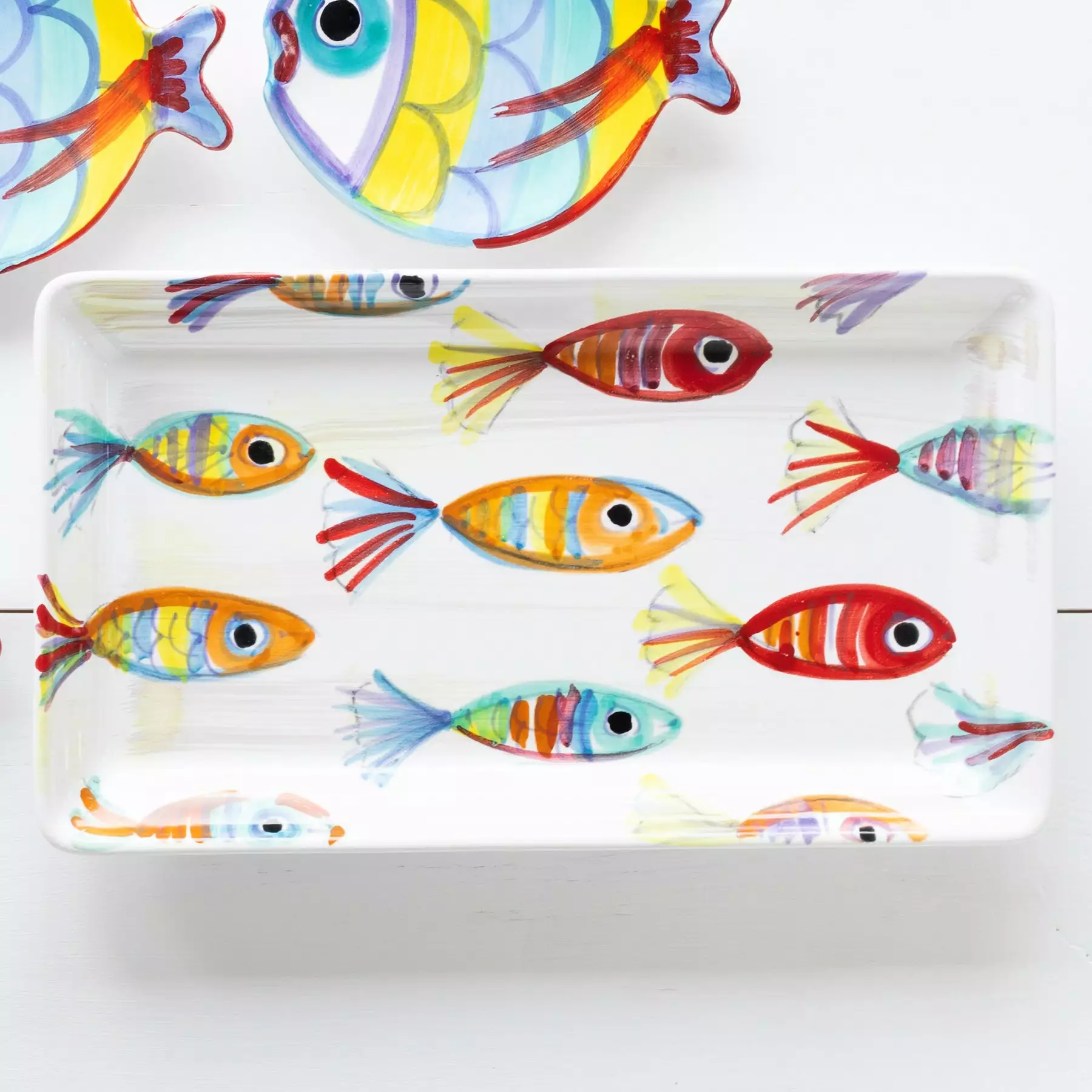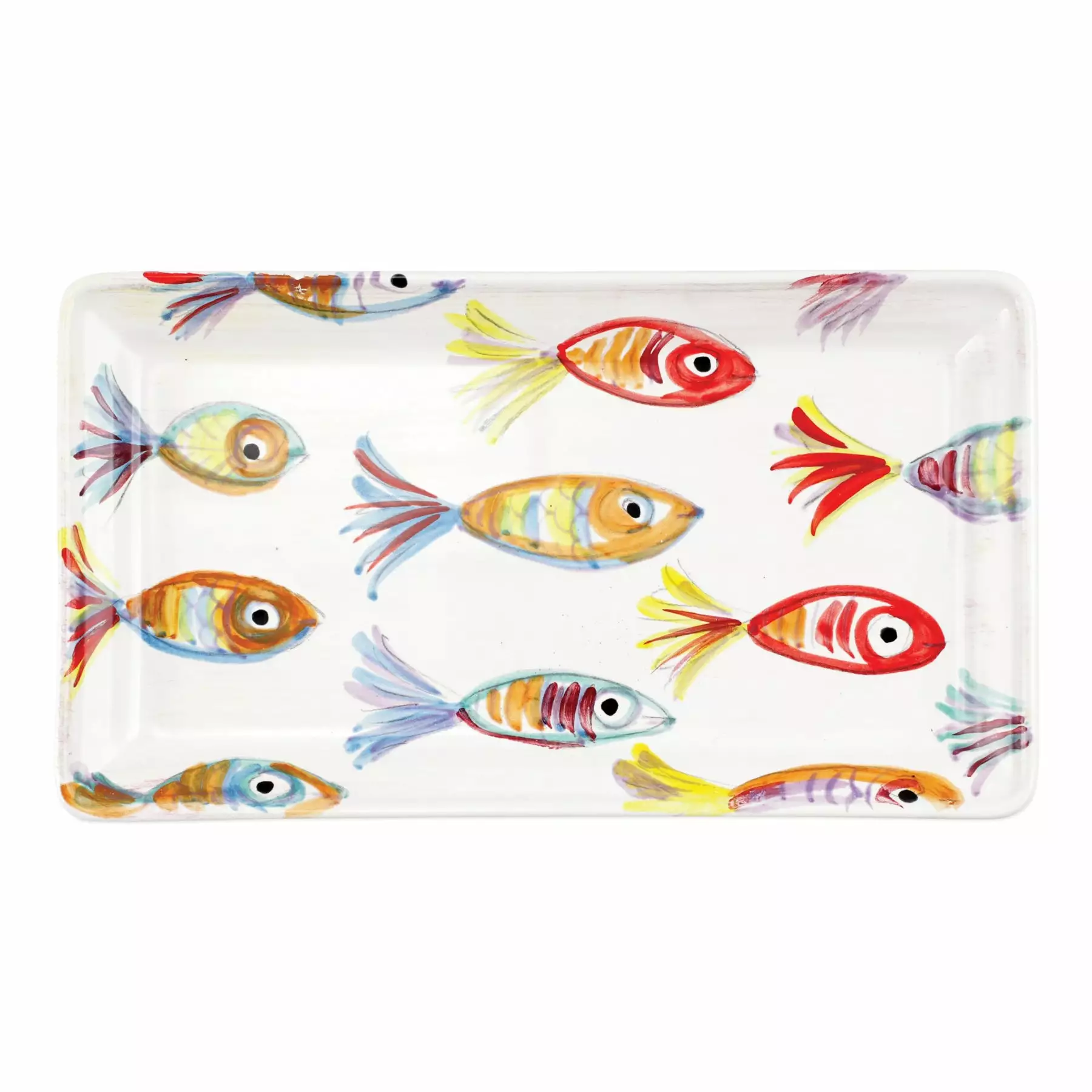 A traditional school of fish was the original inspiration for the Pesci Colorati Rectangular Platter. Our maestro artisans put their signature spin on the design with layers of color in handpainted detail to add variety and texture.