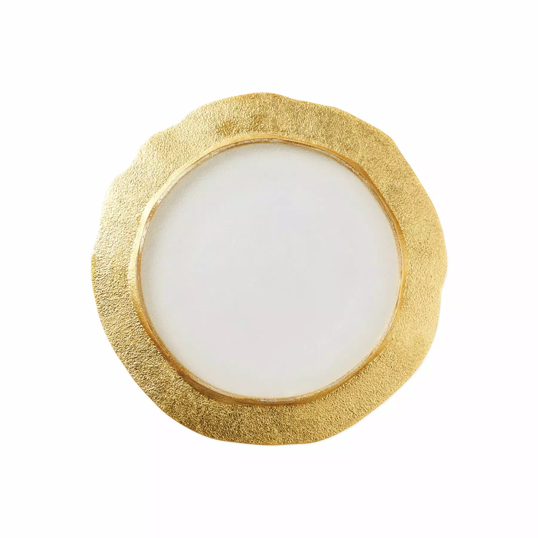 Pair the Rufolo Glass Gold Organic Salad Plate with other items in the Rufolo collection or mix and match to create a truly elegant tablescape. Designed in Italy, glowing gold accents bring luster to any table.
