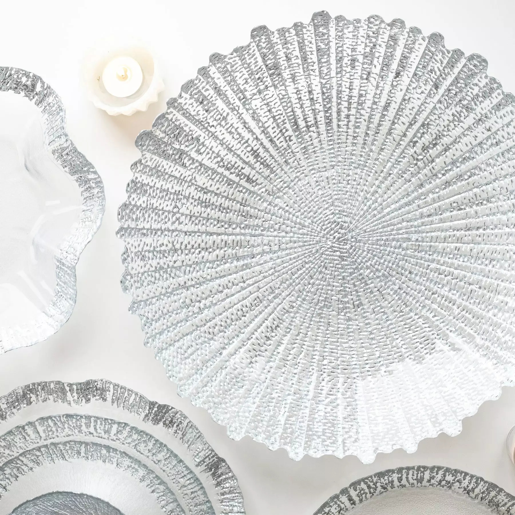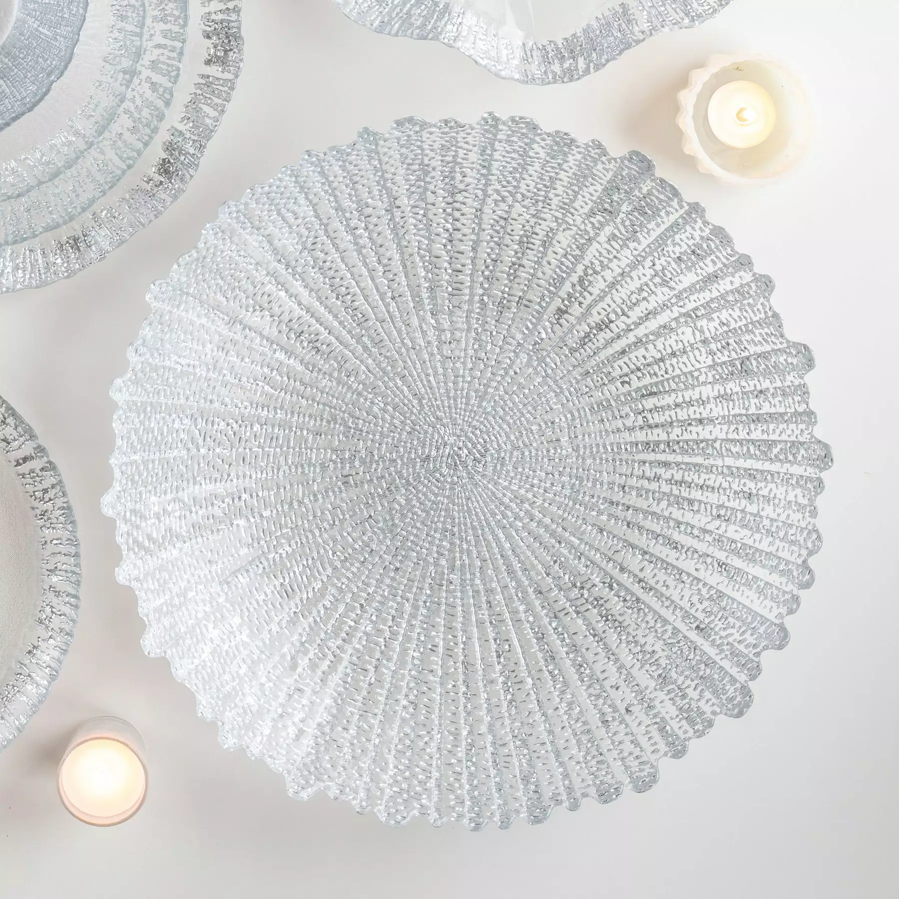 A captivating centerpiece all its own, we also love stacking or mixing the Rufolo Glass Large Serving Bowl with the Rufolo Glass Medium Serving Bowl for a unique and glamorous look.