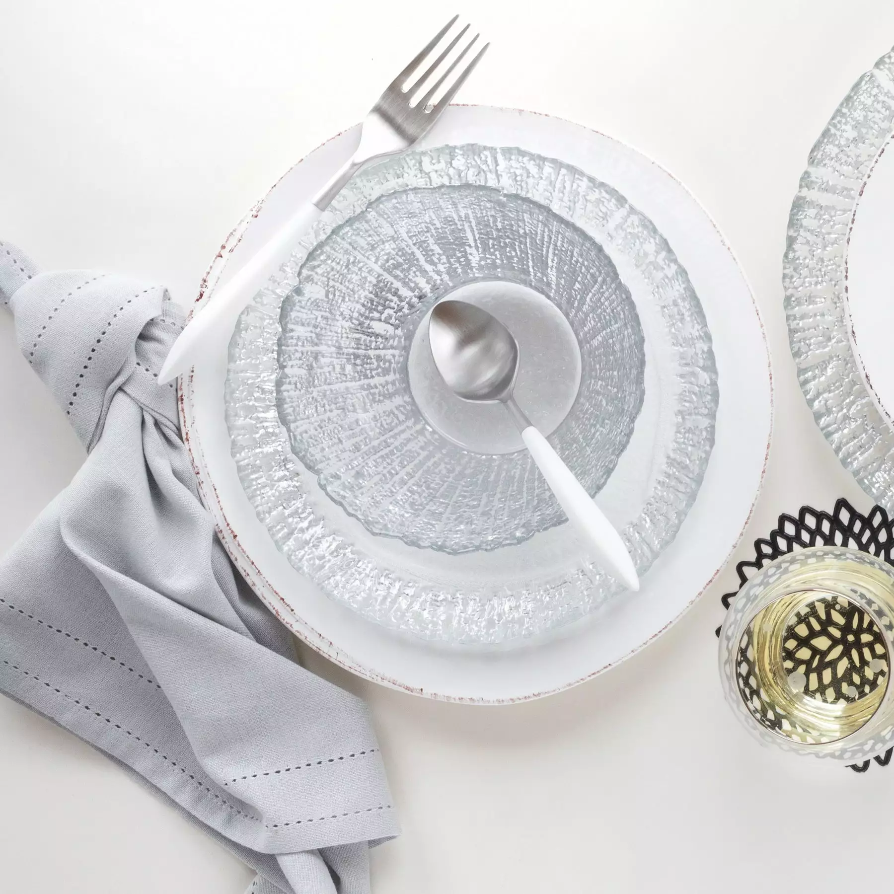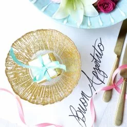 The Rufolo Glass Small Deep Bowl brings luster to your table. The glass piece is encircled with glowing strands, and the embellishment is effortlessly beautiful.