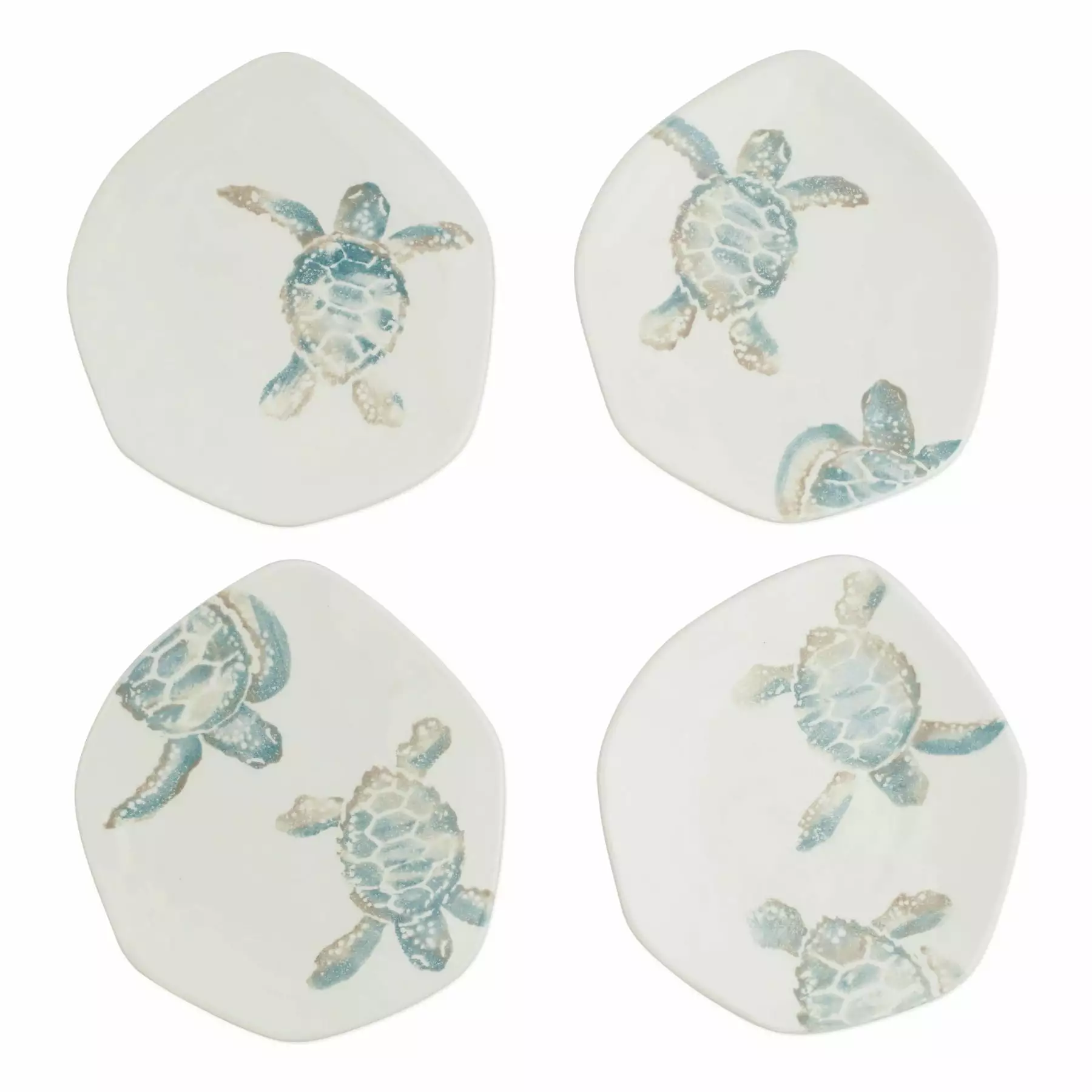 The handpainted sea turtle is rendered in hues of aqua and taupe against a clean, white canvas on the Tartaruga Assorted Salad Plates – Set of 4. Maestro artisan, Gianluca Fabbro, utilizes a unique sponging technique to carefully add detail to each piece.