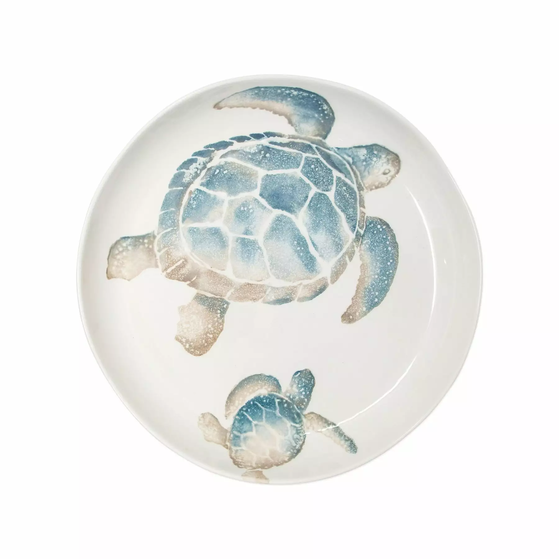 The handpainted sea turtle is rendered in hues of aqua and taupe against a clean, white canvas on the Tartaruga Round Shallow Bowl. Maestro artisan, Gianluca Fabbro, utilizes a unique sponging technique to carefully add detail to each piece.