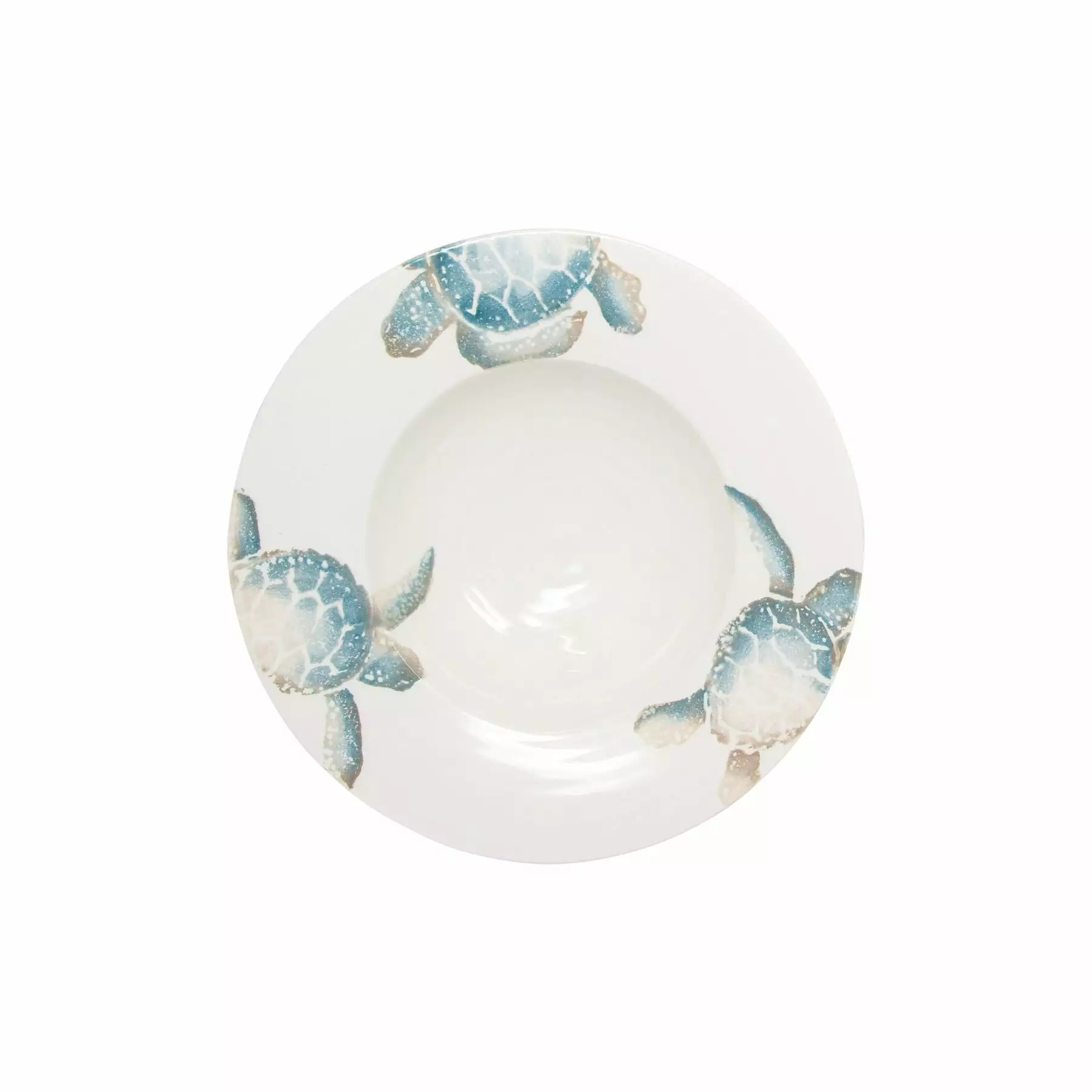 The handpainted sea turtle is rendered in hues of aqua and taupe against a clean, white canvas on the Tartaruga Small Serving Bowl. Maestro artisan, Gianluca Fabbro, utilizes a unique sponging technique to carefully add detail to each piece.