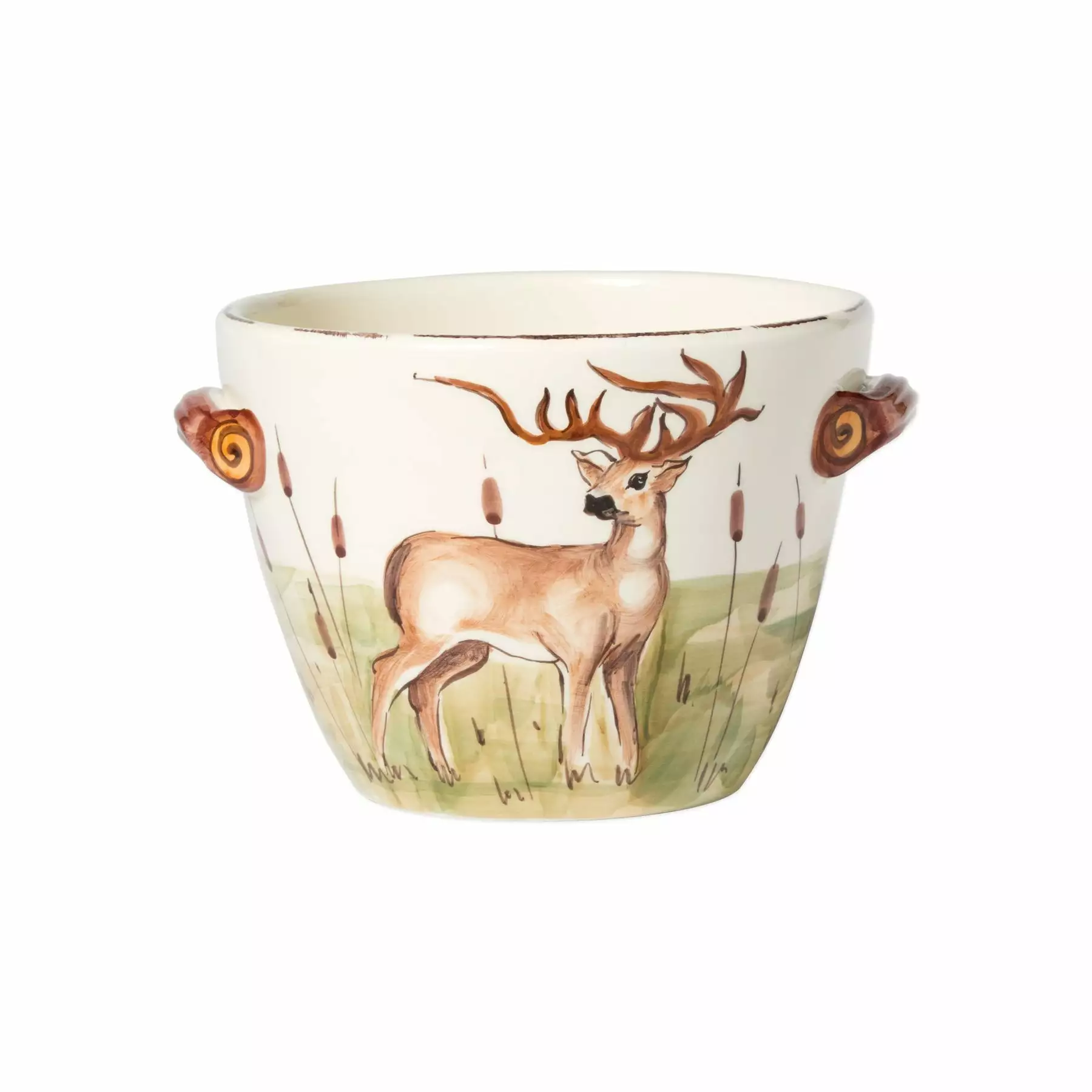 Handpainted with intricate detail, the Wildlife Deer Handled Deep Serving Bowl reveals the beauty and strength of this classic animal. Create a statement anywhere in your home with this truly unique piece.