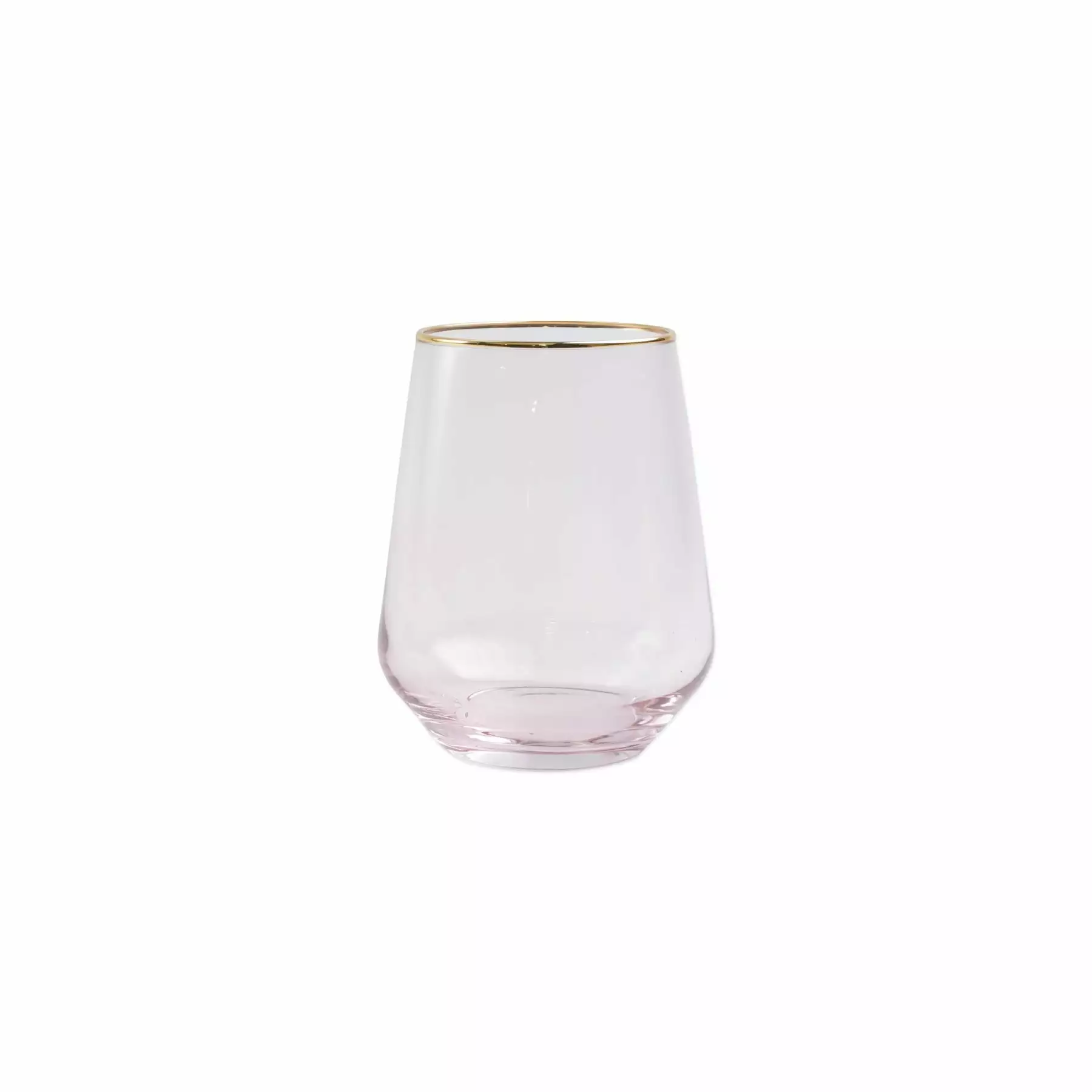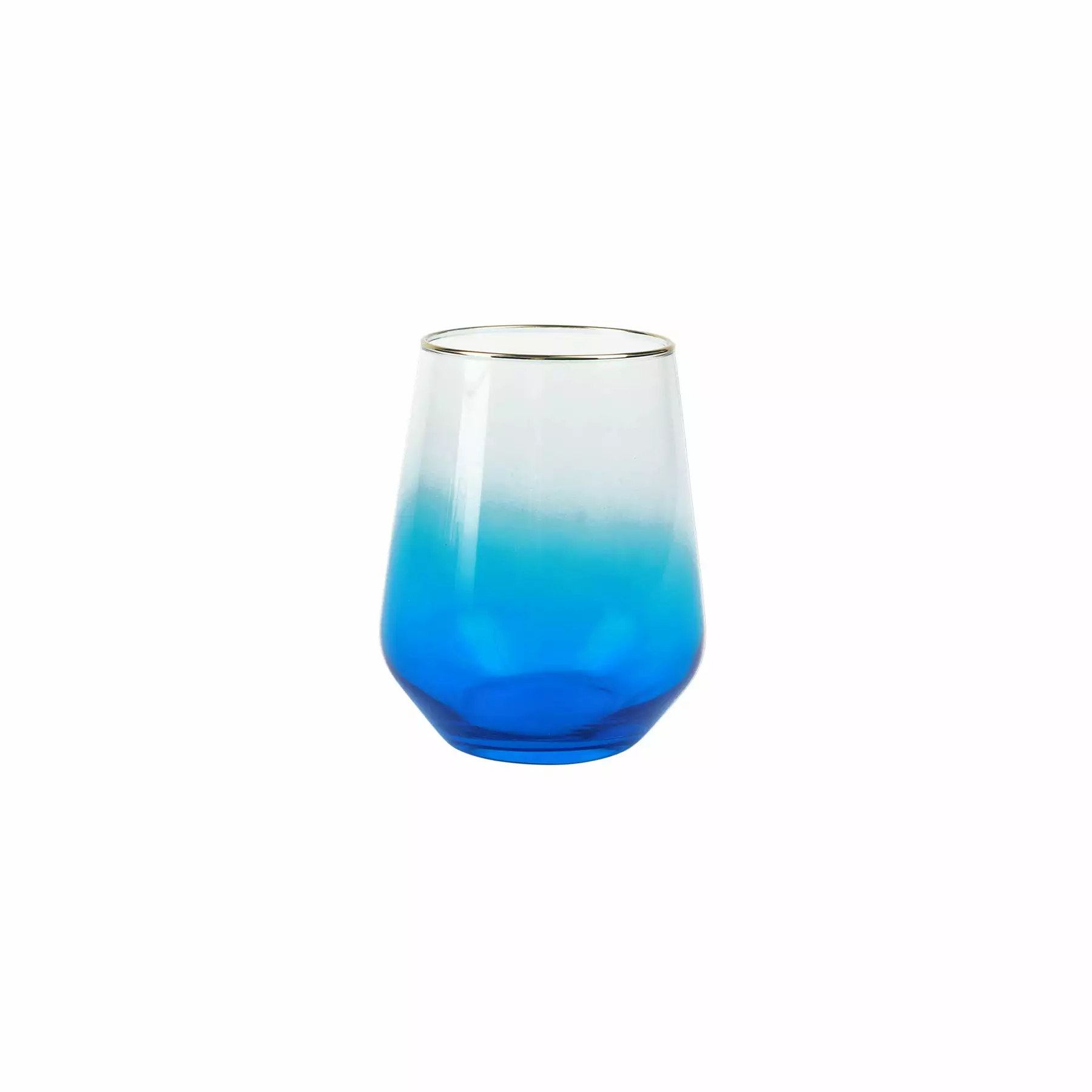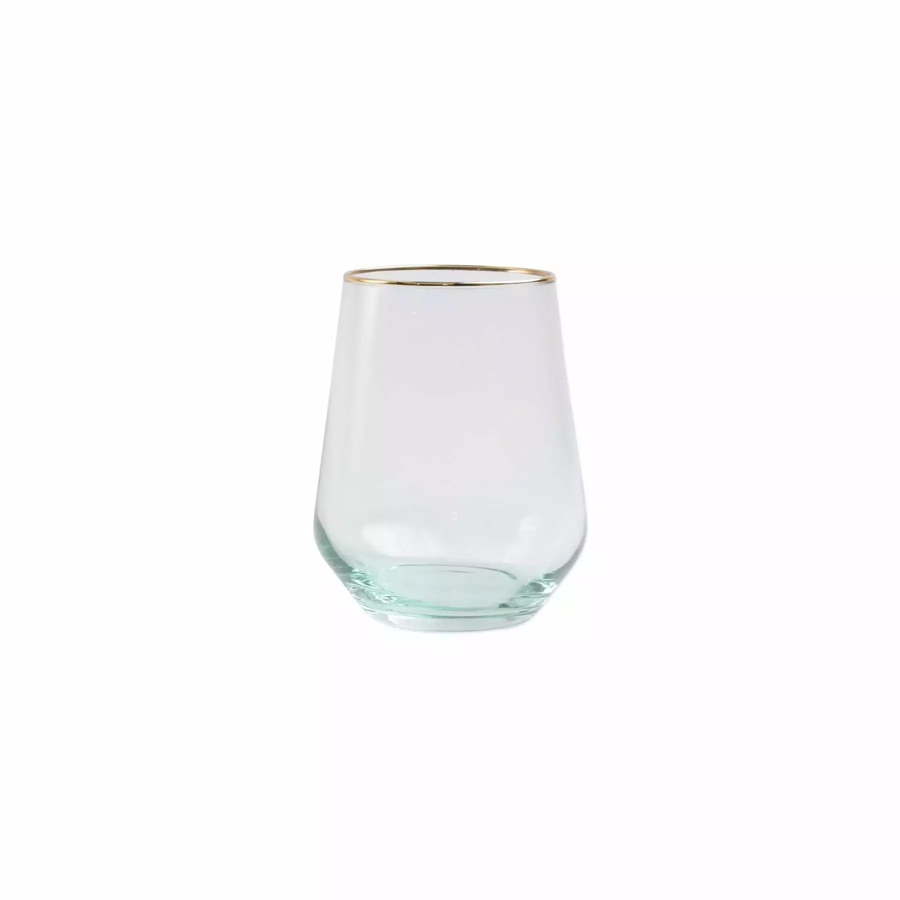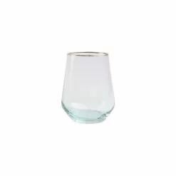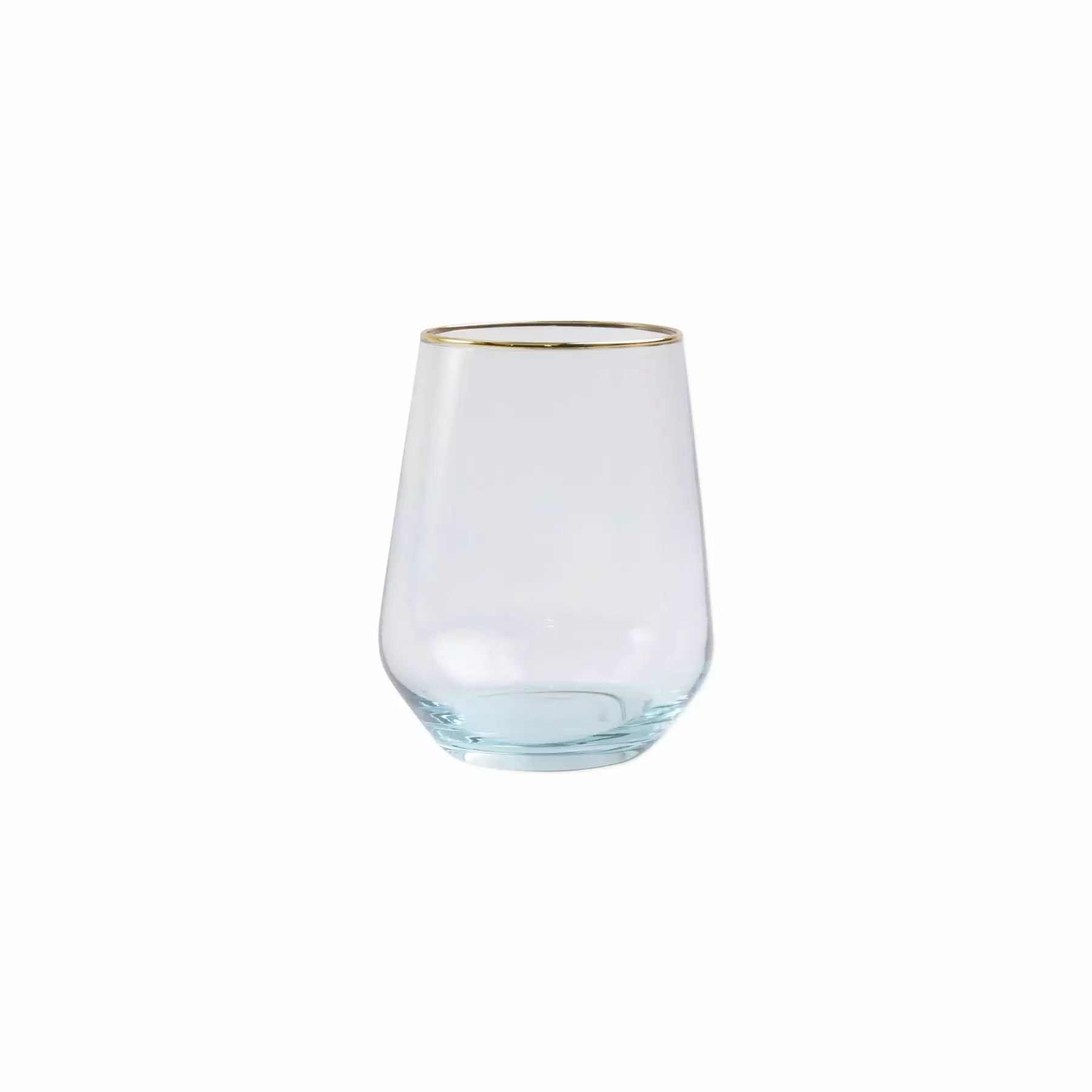 Add sparkle to any setting with a gilded gold rim and varied colored glass that refracts light on the Rainbow Stemless Wine Glass.