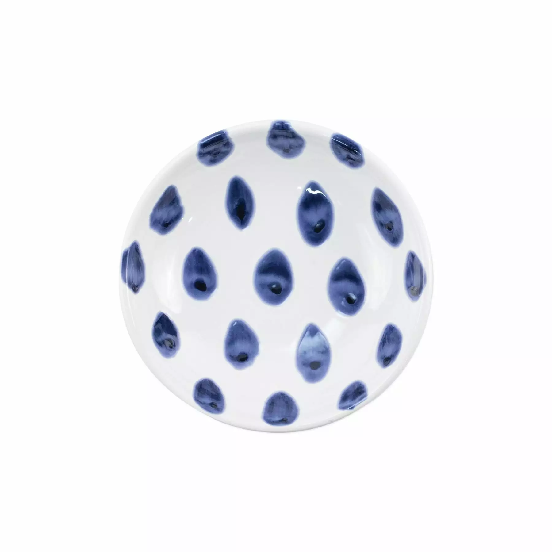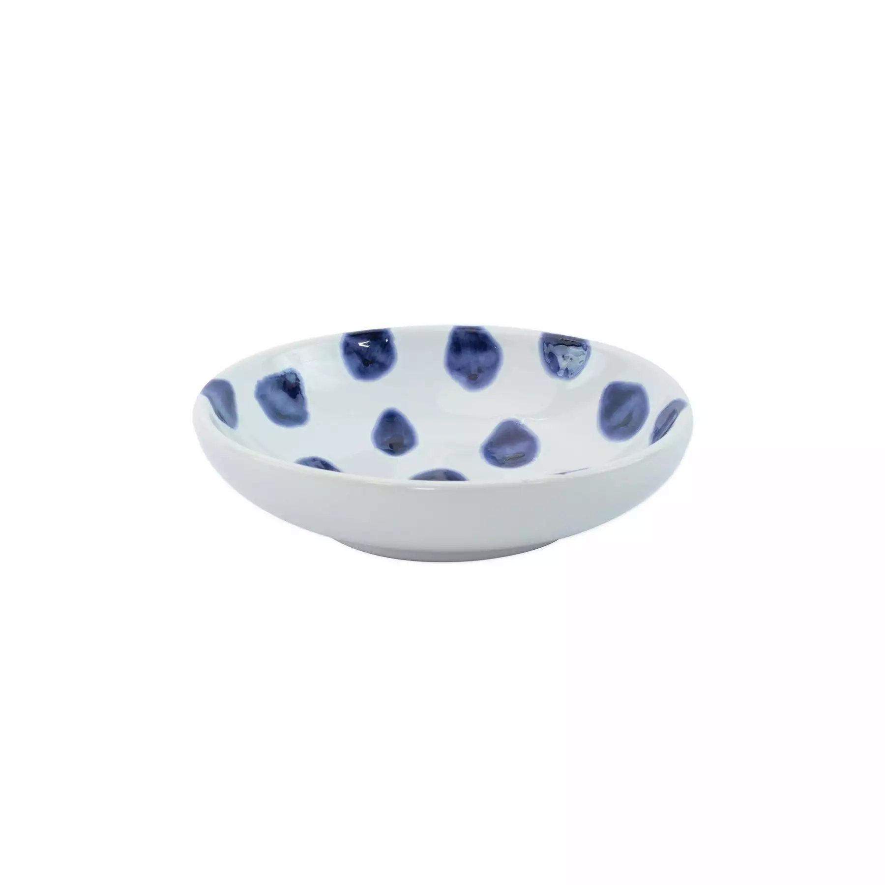 Recreate the beautiful mosaic tiles found in the Greek Isles with the Santorini Dot Condiment Bowl, painted on hard ceramic in a fun blue and white pattern.